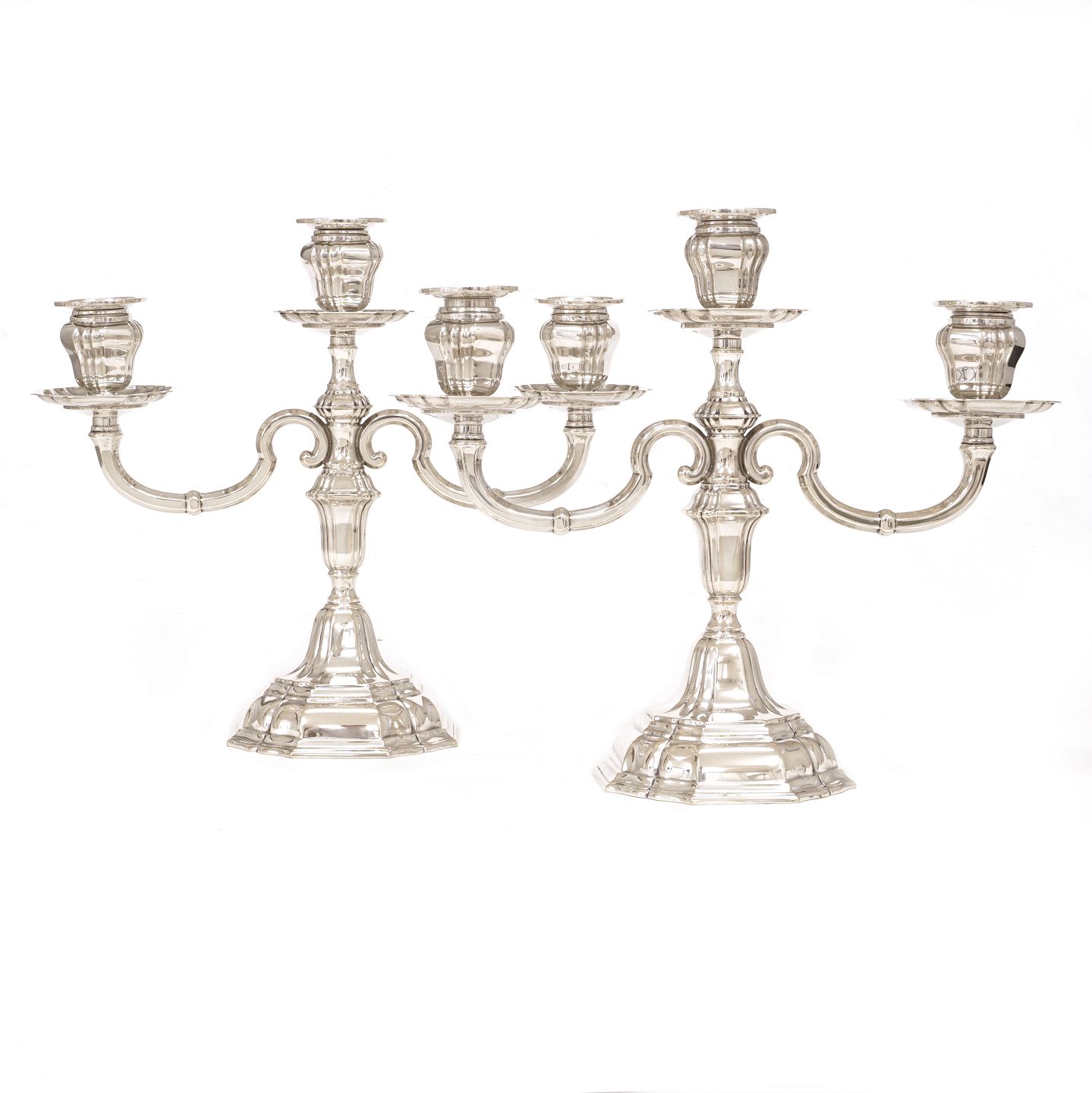 Pair of silver candelabra by K. C. Hermann, Copenhagen 1944. H: 27cm. W: 31cm. W. 1.253gr