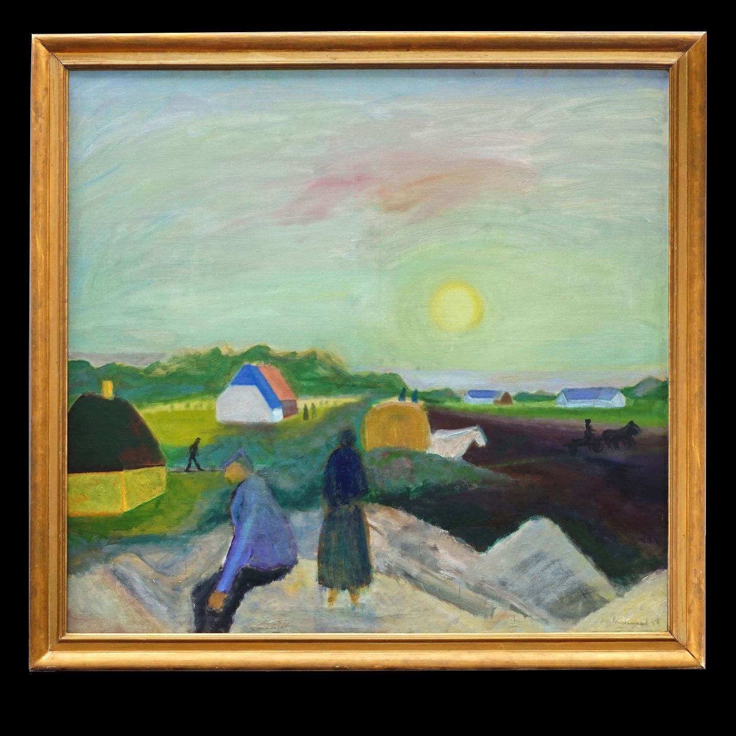 Jens Søndergaard, Denmark, 1895-1957, oil on canvas. "Landscape with dunes and sunshine". Signed and dated 1948. Visible size: 130x139cm. With frame: 147x155cm