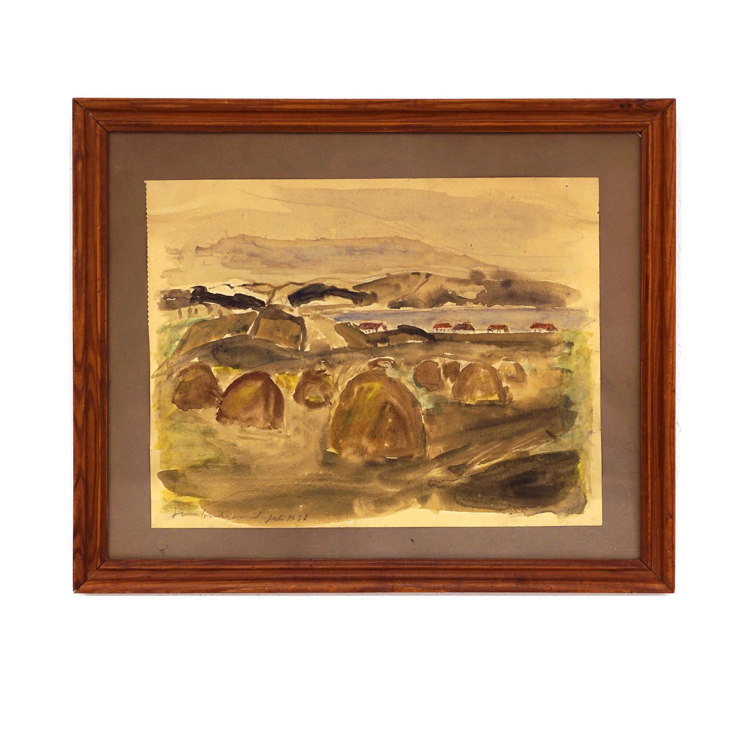 Jens Søndergaard, 1895-1957, akvarel, høstmotiv. Signeret og dateret juli 1937