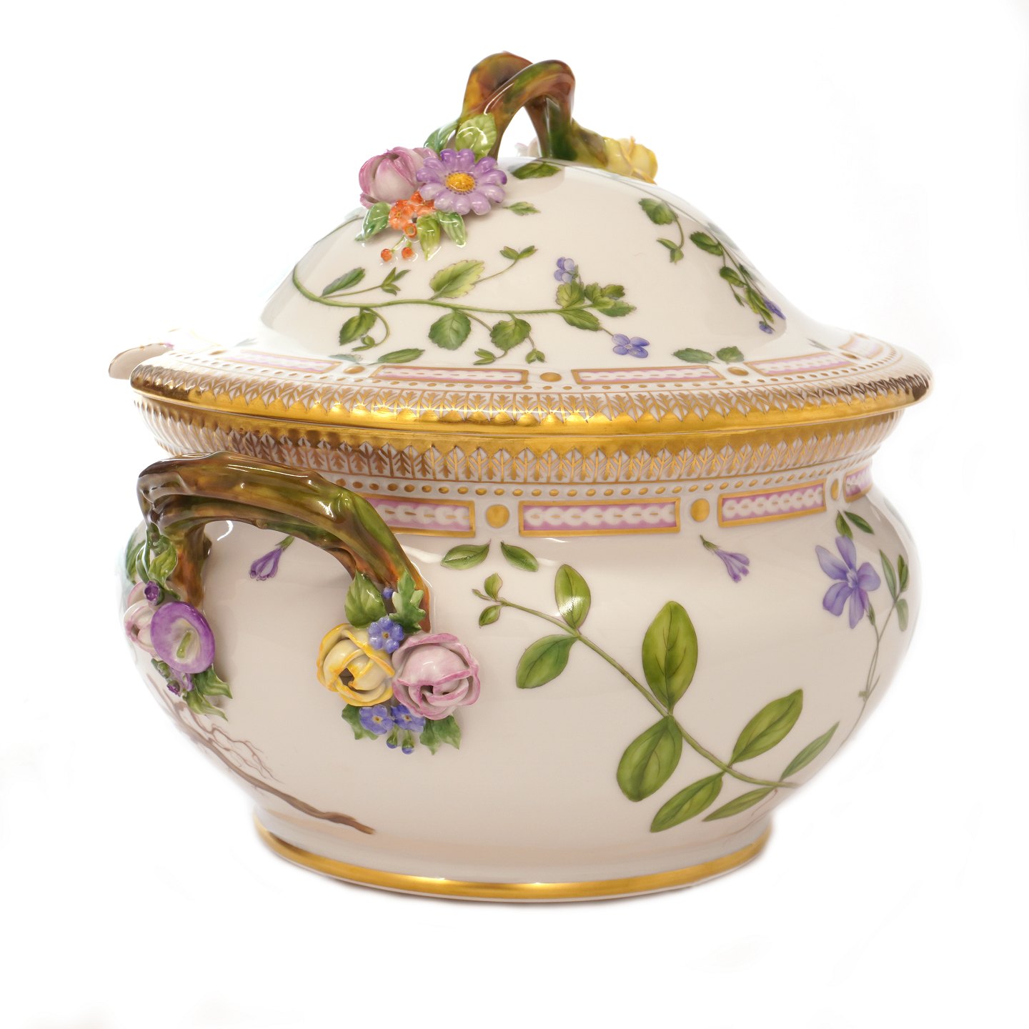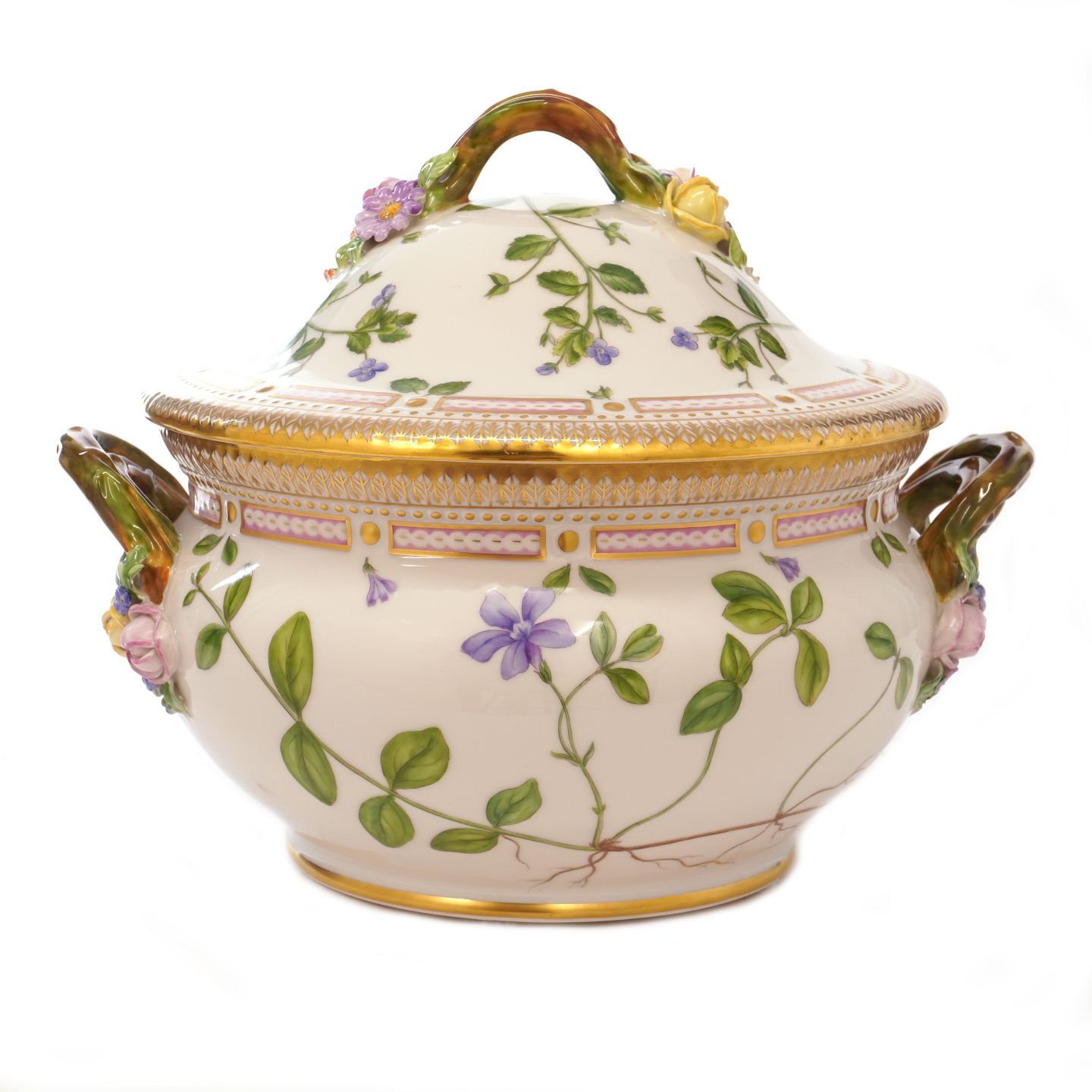 Flora Danica terrin 3562. Royal Copenhagen Flora Danica terrin 3562. "Veronica Buxbaumii Ten.". H: 26cm. D låg: 25cm