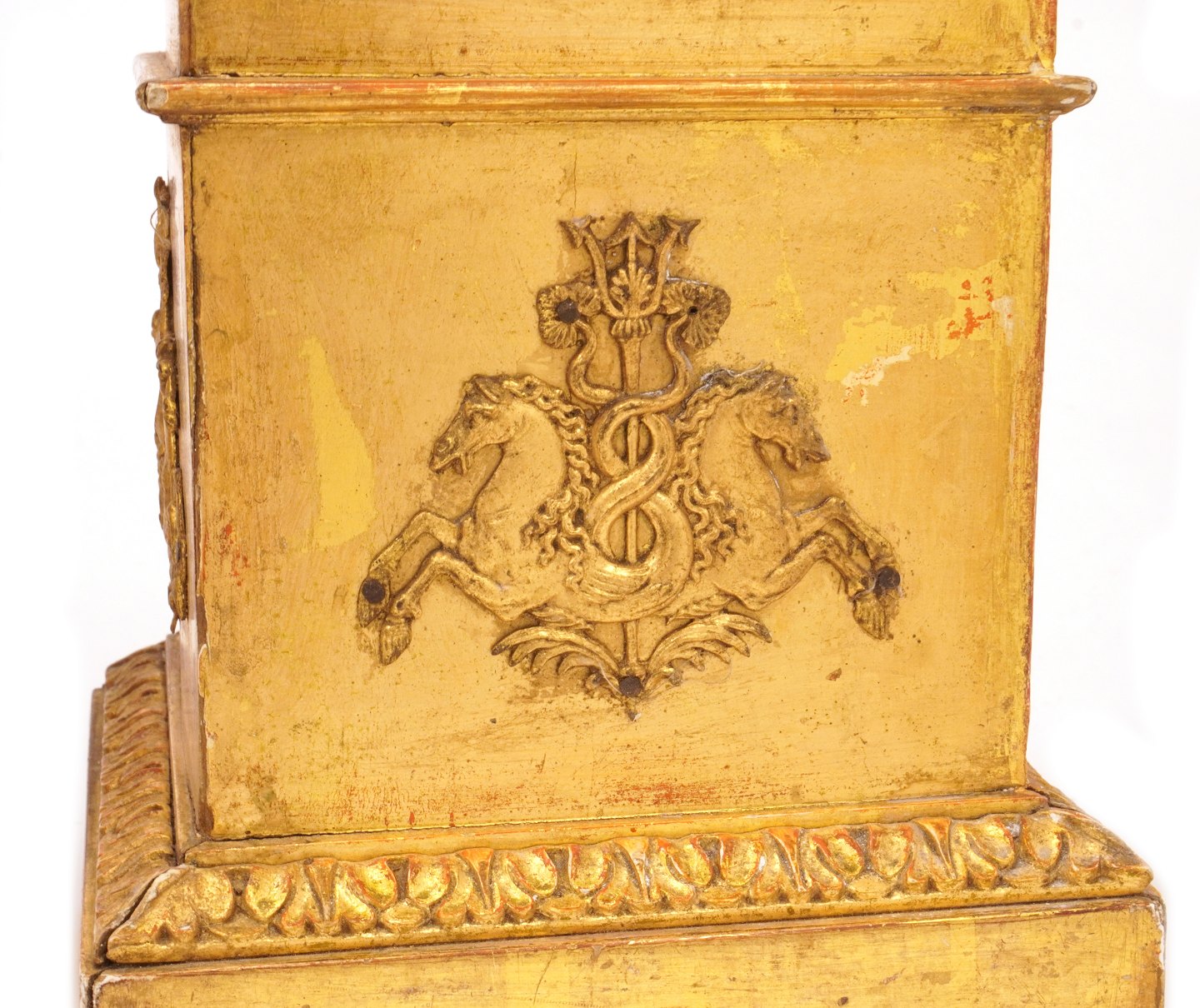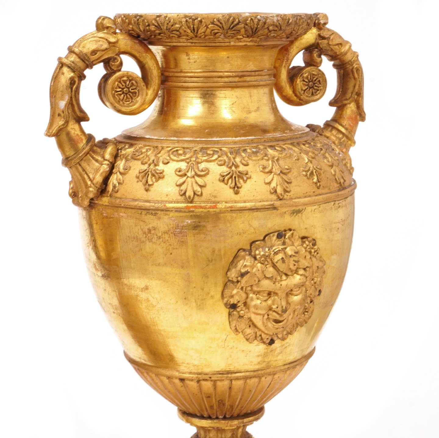 Et par Empire prydvaser i forgyldt træ. Med etiket fra August Dehne, hofbager i Wien, ca. år 1815. H: 49cm