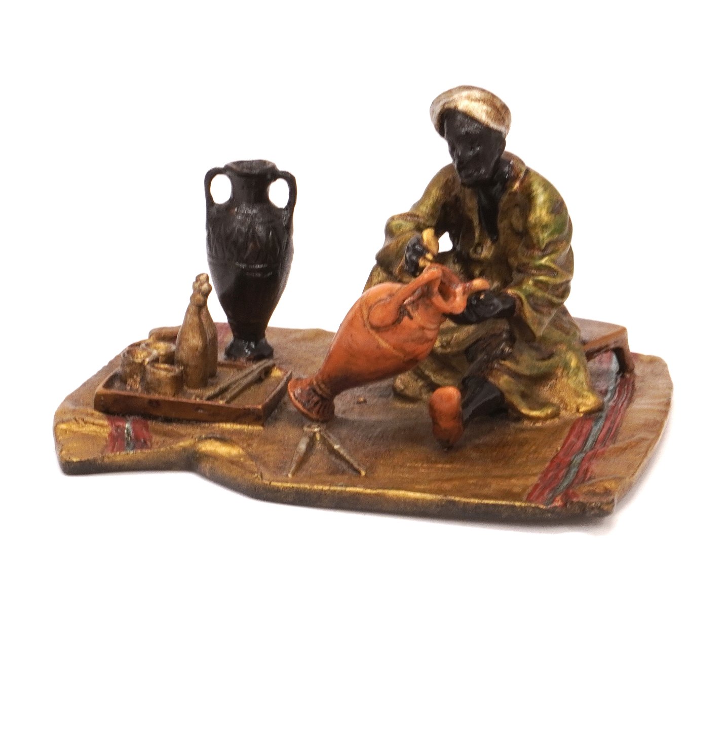 Wienerbronze i form af vasedekoratør. Signeret Franz Bergmann. H: 5,8cm. Base: 7,5x9cm