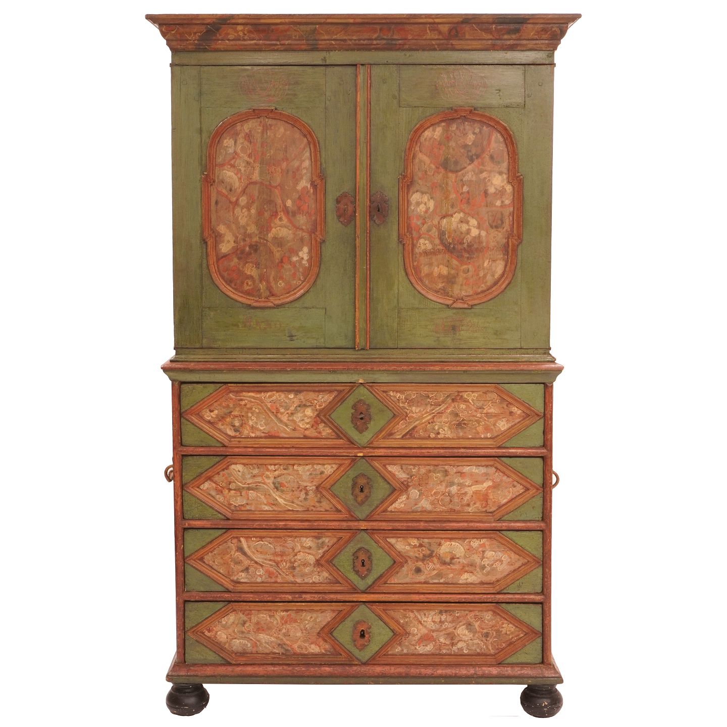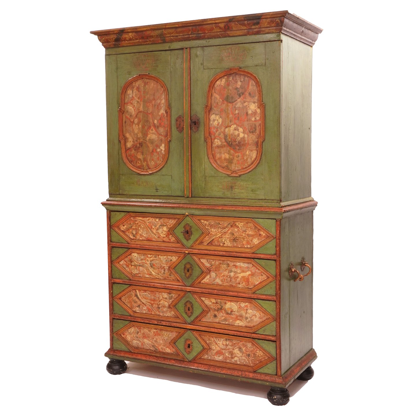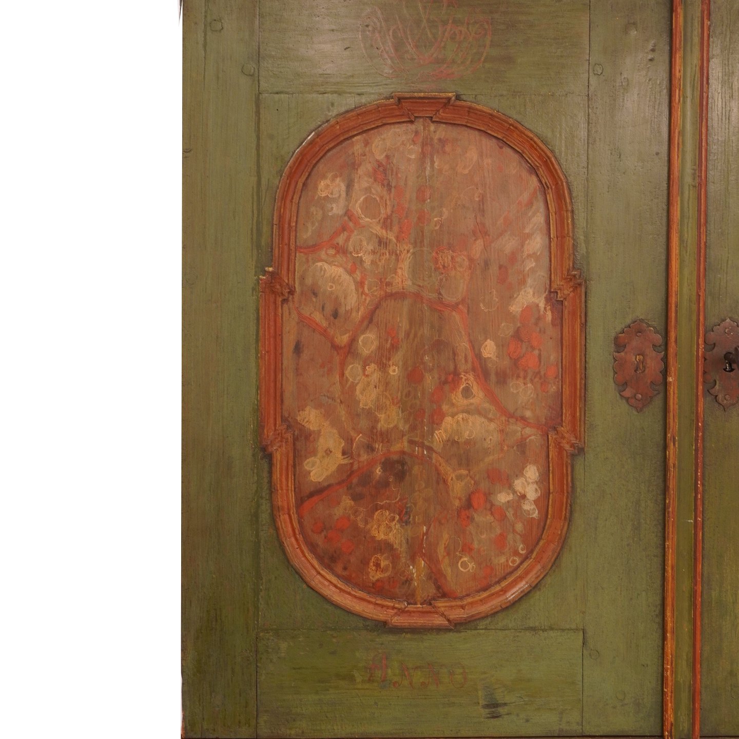 Barokt Barsmark skab opkaldt efter byen Barsmark på Løjt Land. Dekoreret med ejermonogrammer og årstal 1772. H: 200cm. B: 116cm. D: 55cm
