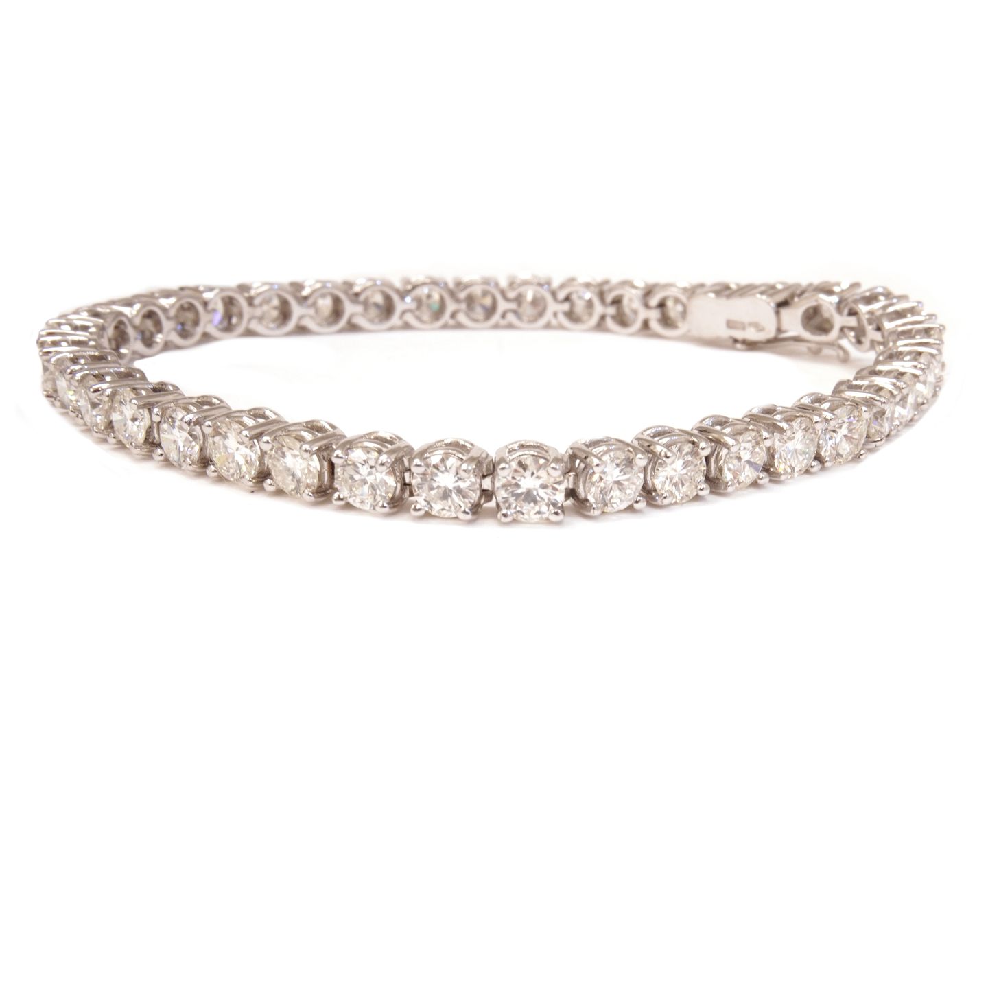 Tennisarmbånd i 18kt hvidguld prydet med 38 brillantslebne diamanter på hver ca. 0,25ct i alt ca. 9,5ct. L: 18,5cm