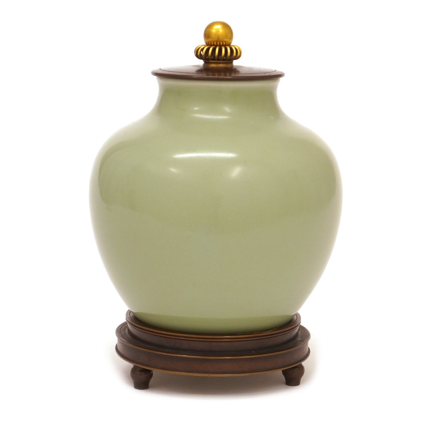 Stentøjsvase med celadon glasur og bronzemontering af Knud Andersen