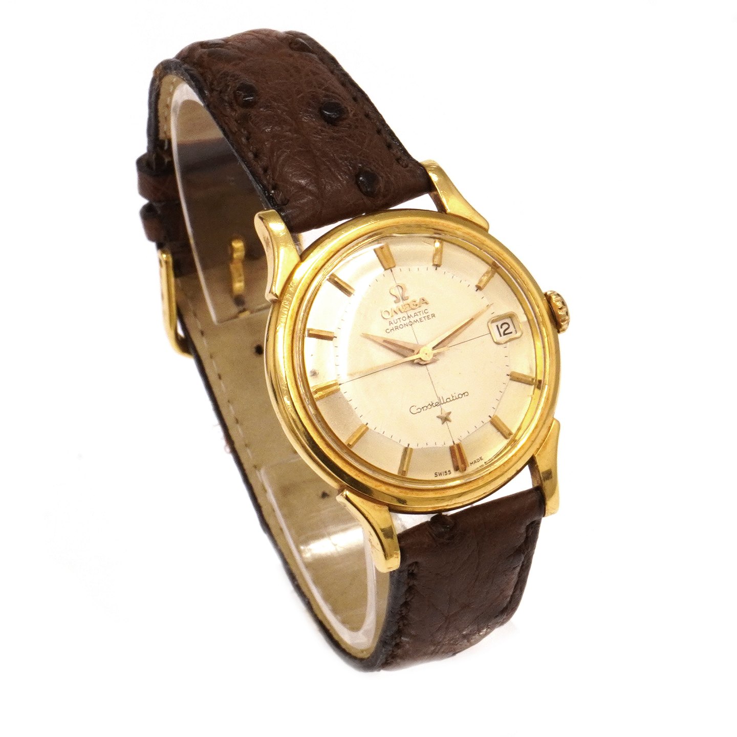 Omega Constellation Pie Pan i 18kt guld med box og certifikat ref. 14382 82SC solgt 01.06 1961