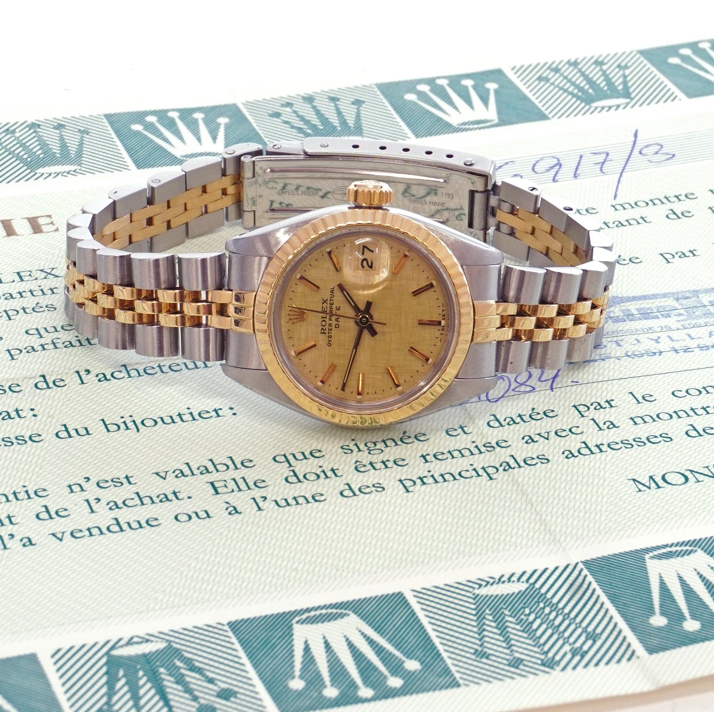 Rolex Oyster Perpetual Date Gold und Stahl Ref. 6917/3. Wird mit Zertifikat datiert 31.01.1984 geleifert. D: 26mm