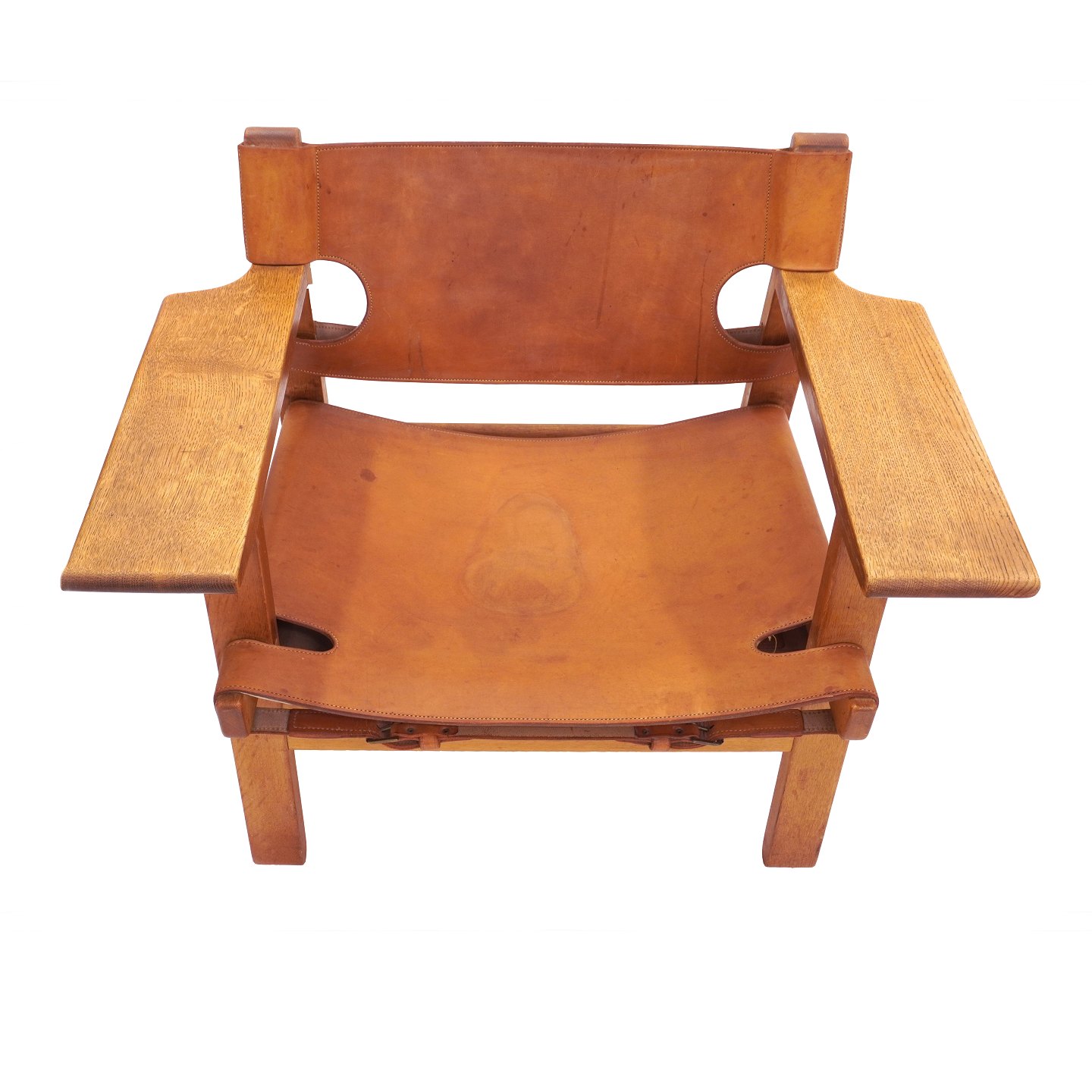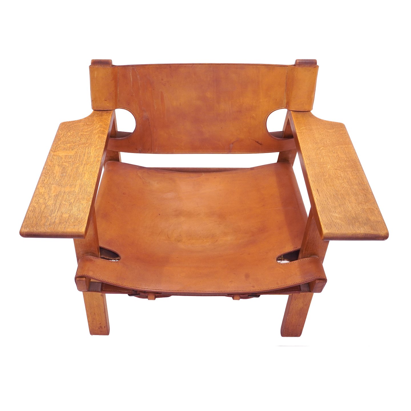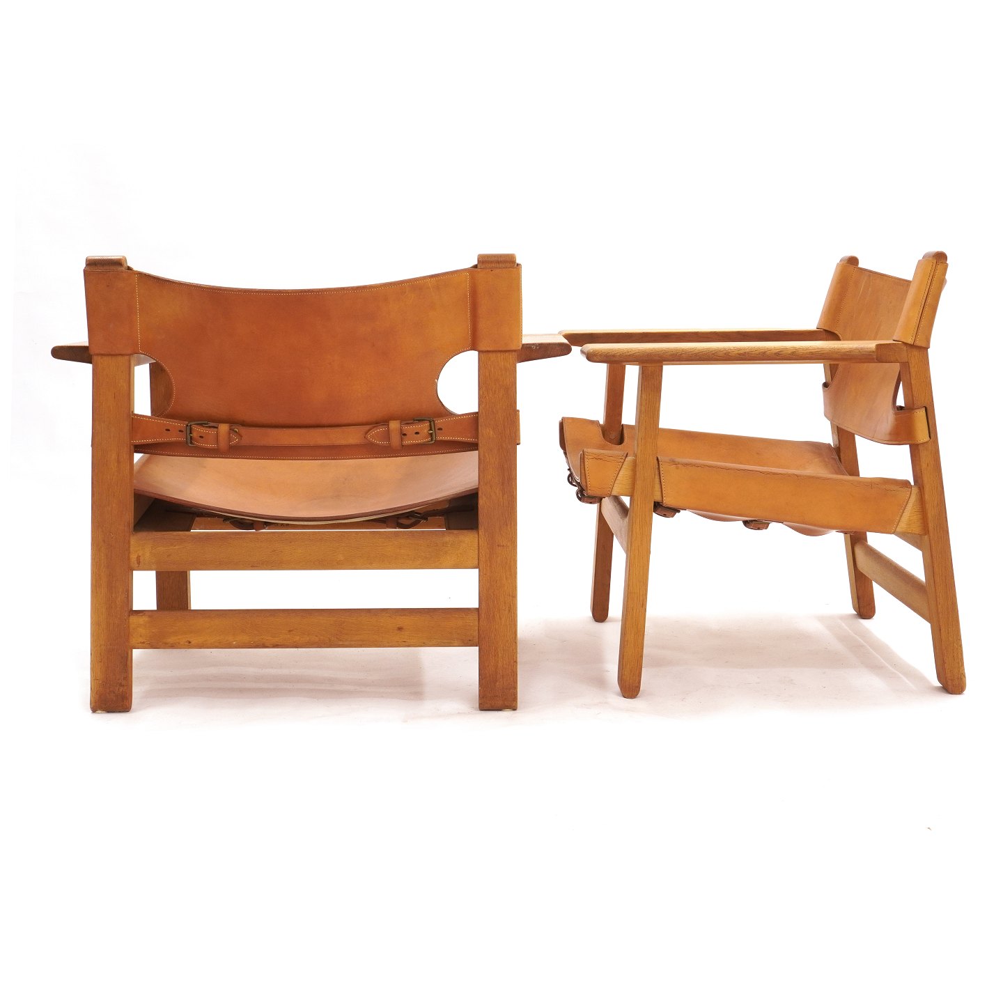 Ein frühes Paar Børge Mogensen der Spanische Stuhl mit patiniertem Eichengestell und Kernleder