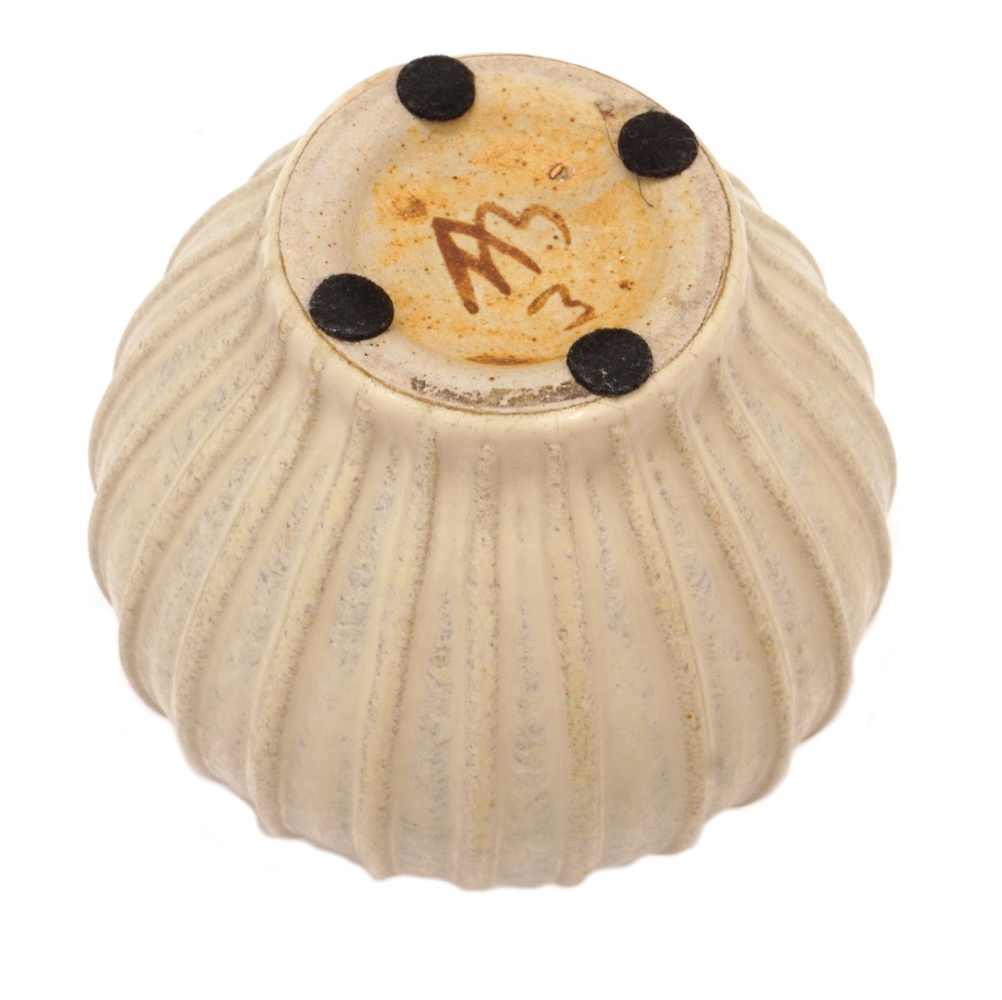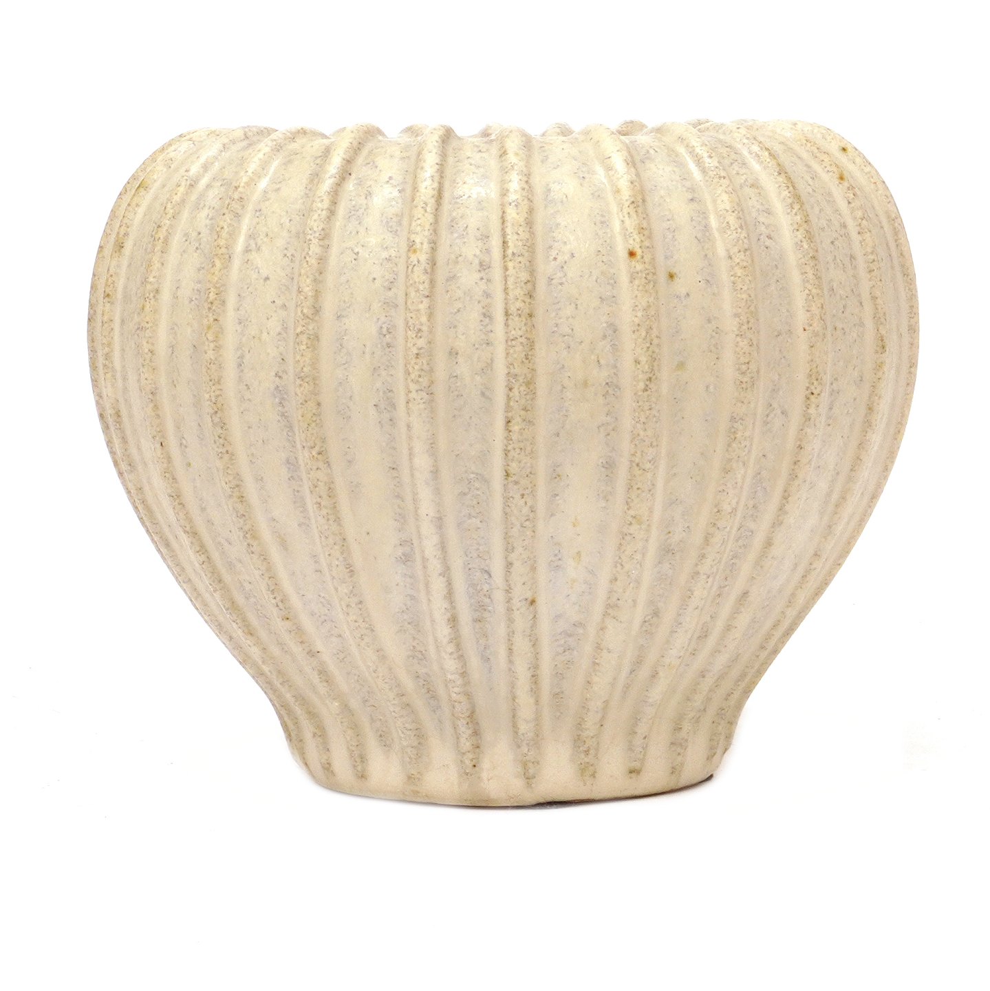 Arne Bang riflet vase 3 udført i stentøj. Signeret Arne Bang. H: 11cm. D: 14cm