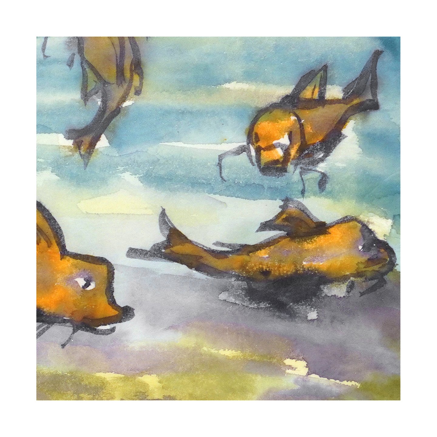 Emil Nolde, 1867-1956, akvarel med motiv i form fire fisk