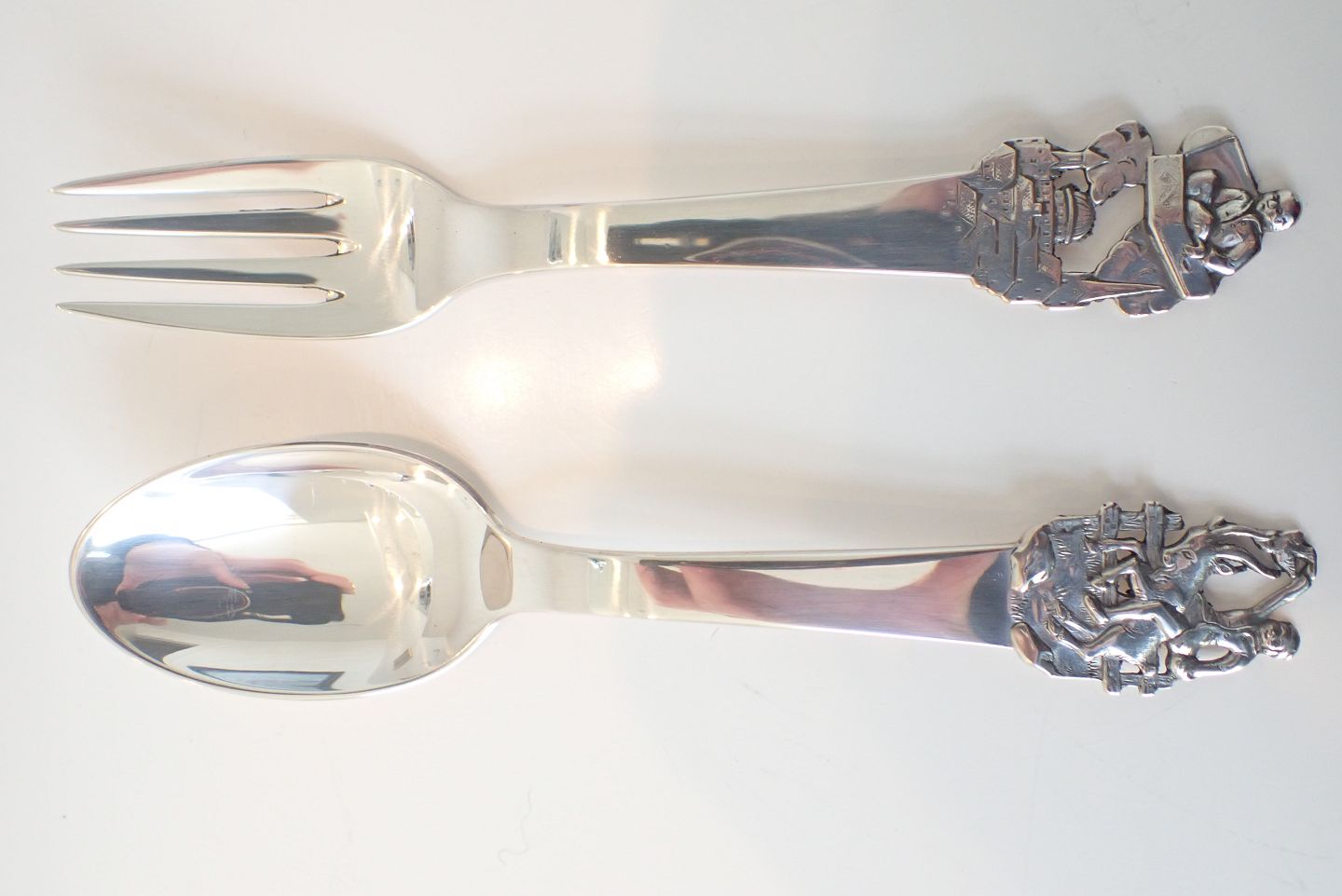 Horsens sølvvarefabrik - børnebestik fra Eventyrserien. Kombineret af to eventyr.