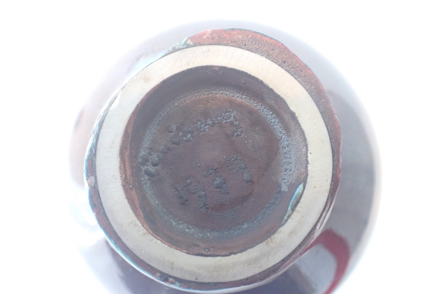 Berndt Friberg (1899 - 1981) - Lille, dråbeformet vase i stentøj med blank grøn/brun/blå spættet glasur. Gustavsberg. Stemblet Friberg 79. Højde: 11,7 cm. Bredde: ca. 7 cm. I fin stand men med oprindelig sleben bund.