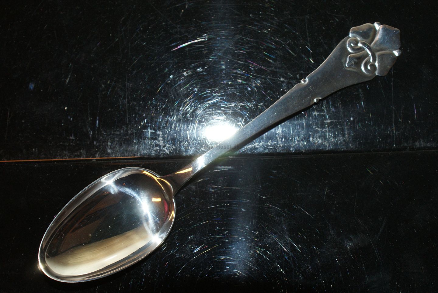 Dessert spoon / Lunch spoon French Lily Silver Length 18.5 cm. Beautiful and well maintained The cutlery is polleret and packed in a bag.