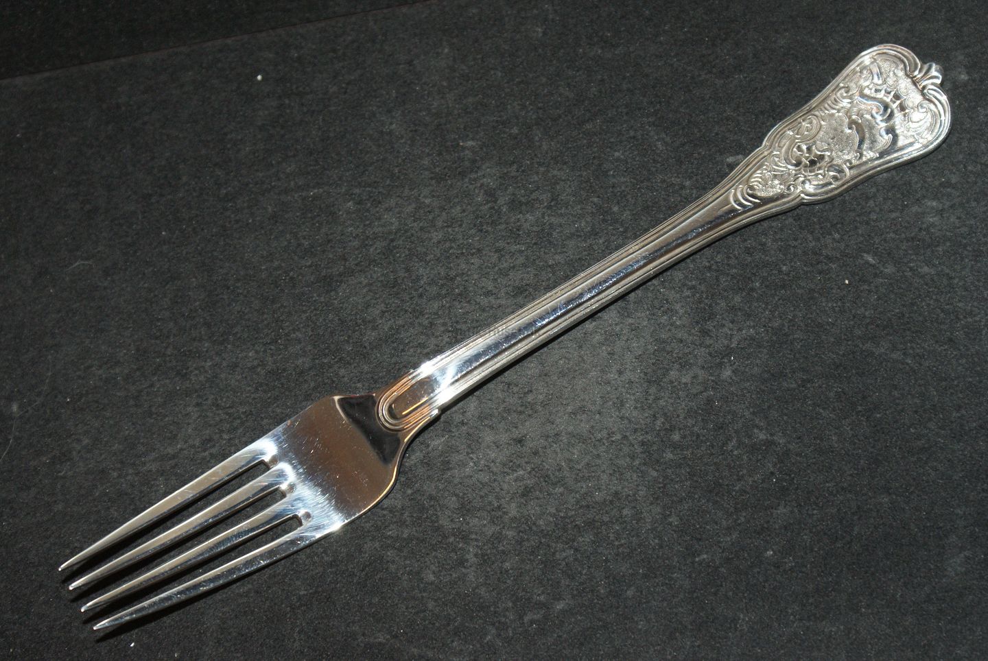 Anton Michelsen Rosenborg Sterling Silver Lunch Fork, Length 18.5 cm. With initials otherwise in well-kept condition All cutlery is polished and packed in a bag
