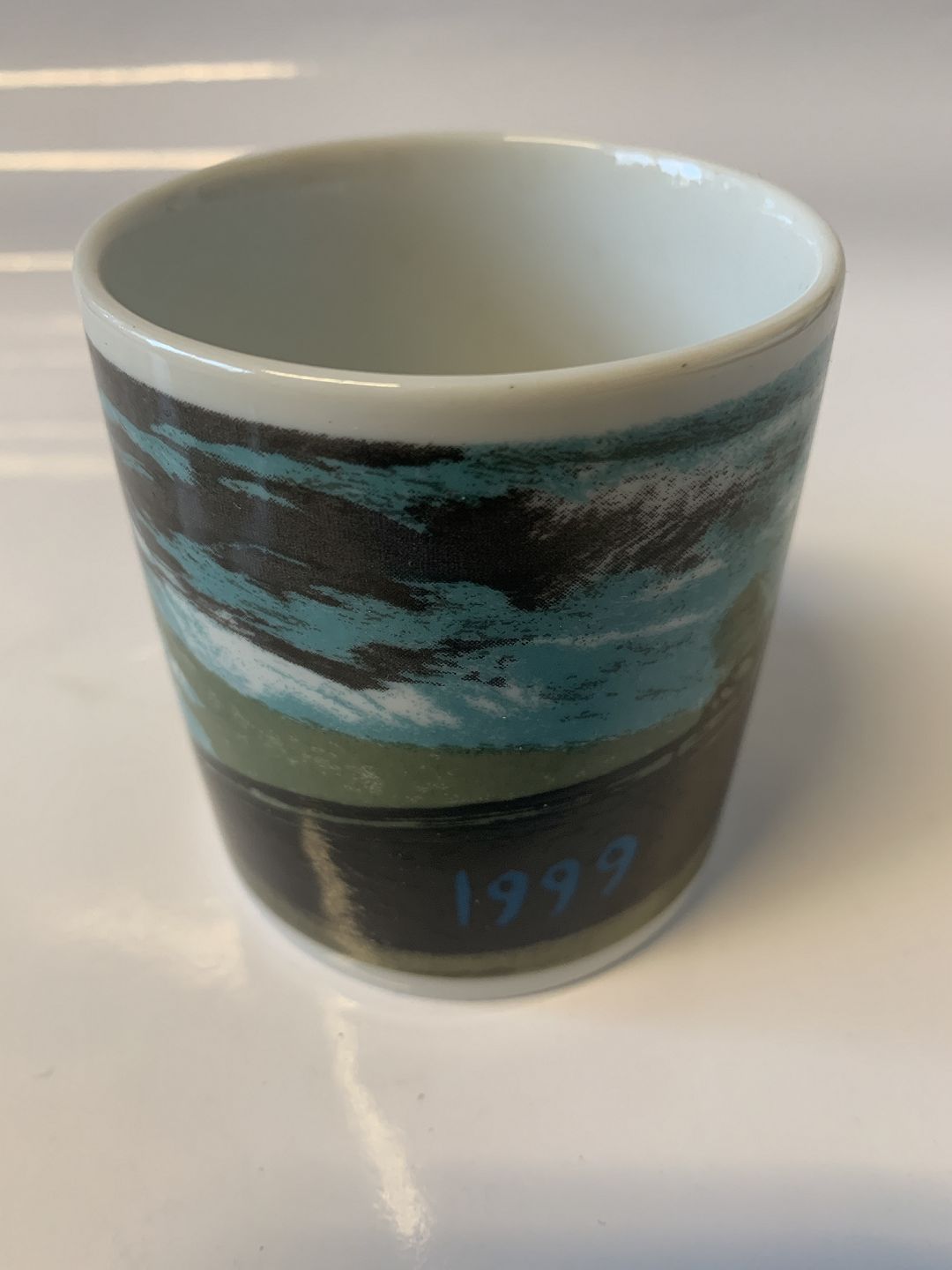 Royal Copenhagen Faience, Year Mug 1999 Deck No. 3495 or 495 Height 7.5 cm. Factory First Beautiful and well maintained condition.
