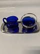 Small sugar bowl and creamer in blue glass, with a silver stained tray. The sugar bowl with a handle of silver stain, which is stamped. A beautiful set that will suit both the breakfast and coffee table.