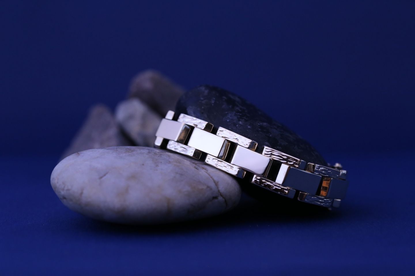 Block gold bracelet. The classic design is timeless, and Danish design at its best. With 3 rows and chiseling.