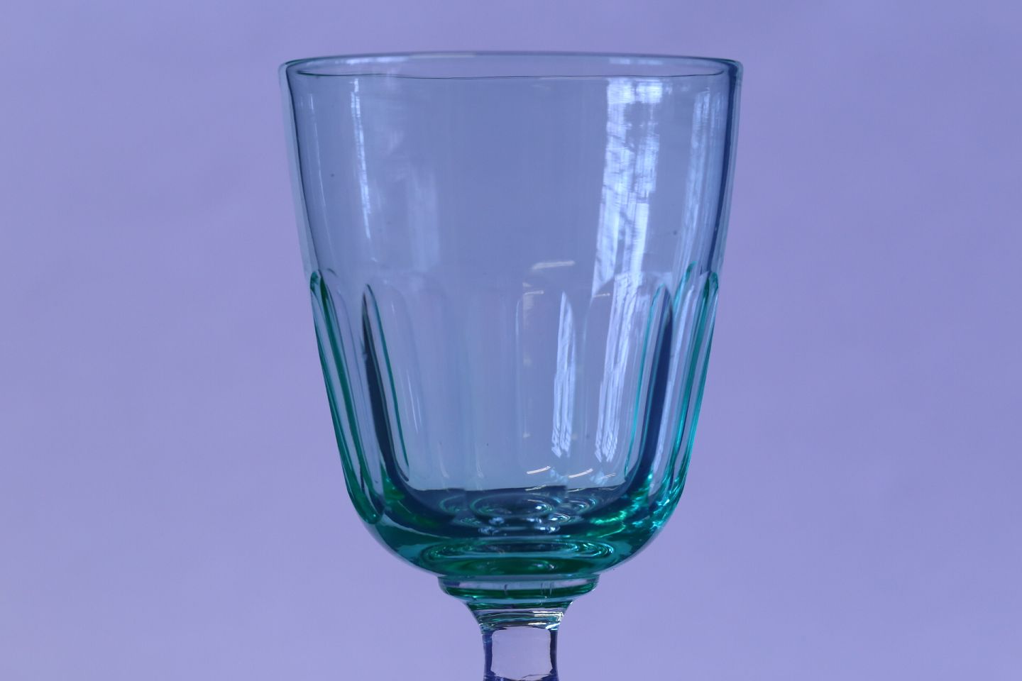 White wine glass uranium green, Christian d.8 (Chr.d.8) glass. Height: 12.3 cm. Diameter: 6 cm. They vary slightly in size. Nice and well-maintained condition.