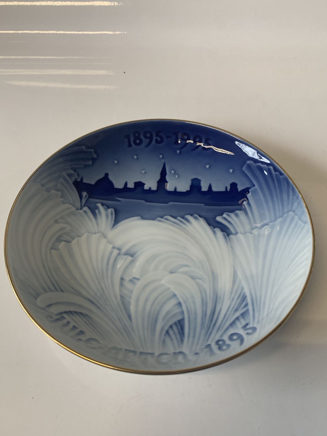 Bing & Grondahl Jubilee Christmas plate with gold, 1895-1995