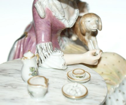 Rare Royal Jullian overglaze figure, Lady of Tea table