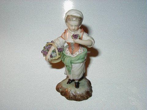 Antik Kongelig Figur i Overglasur Pige med Blom