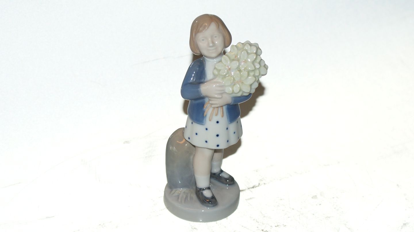 Kongelig figur, Maj, Pige med blomster Design: Hans Henrik Hansen Dek. nr. 4527 1.Sortering Højde 17 cm. Flot og velholdt stand.