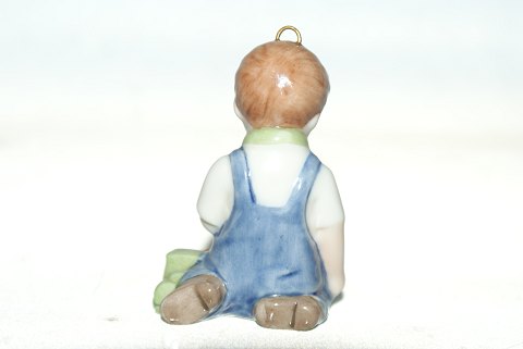 Royal Copenhagen Børnenes Jul 2002, Christian, Dreng m/egern Figur til ophæng Dekorations nummer 1243 743 1.Sortering Størrelse: 5,5 cm. Flot og velholdt stand.