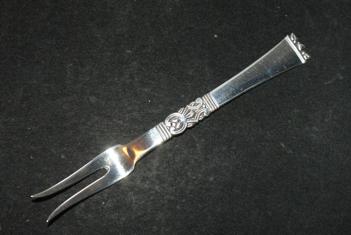 Pålægsgaffel Rigsmønster Sølvbestik Frigast sølv Længde 13,5 cm. Brugt og velholdt. Alt bestik er poleret og pakke i pose