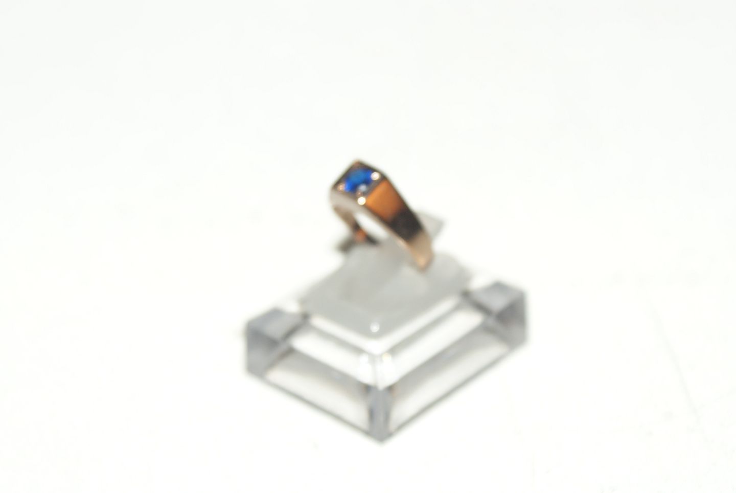 Elegant Damering med blå sten i 8 karat guld Stemplet SAV Størrelse 54 Tjekket af guldsmed og varen findes ikke fysisk i vores butik så kontakt os for yderligere info eller ring 1 dag før for fremvisning