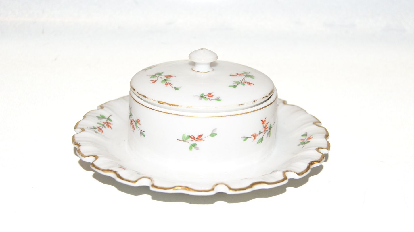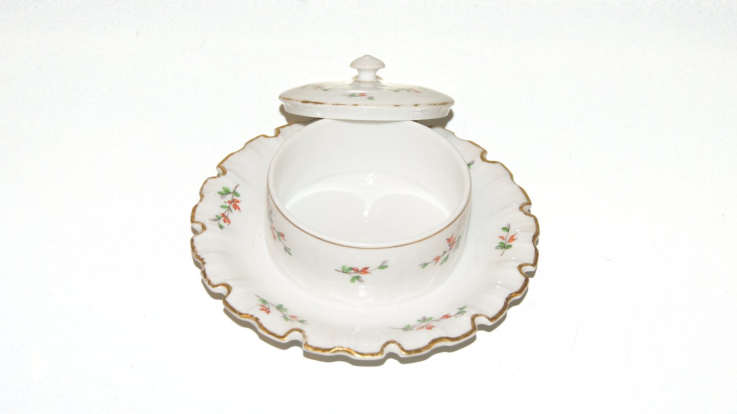 Royal Copenhagen Berberis, Butter dish. Diameter 16 cm. Height 8 cm. 1st grade. There is some wear on the gold rim, otherwise nice and well-maintained condition.
