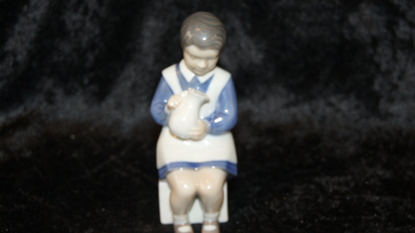 Bing & Grøndahl #Siddende pige med mælkekande Dek nr #2392 1 Sortering Højde 13 cm Pæn og velholdt stand