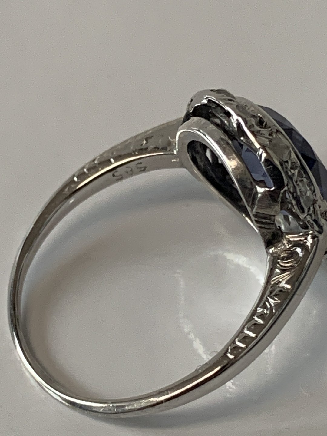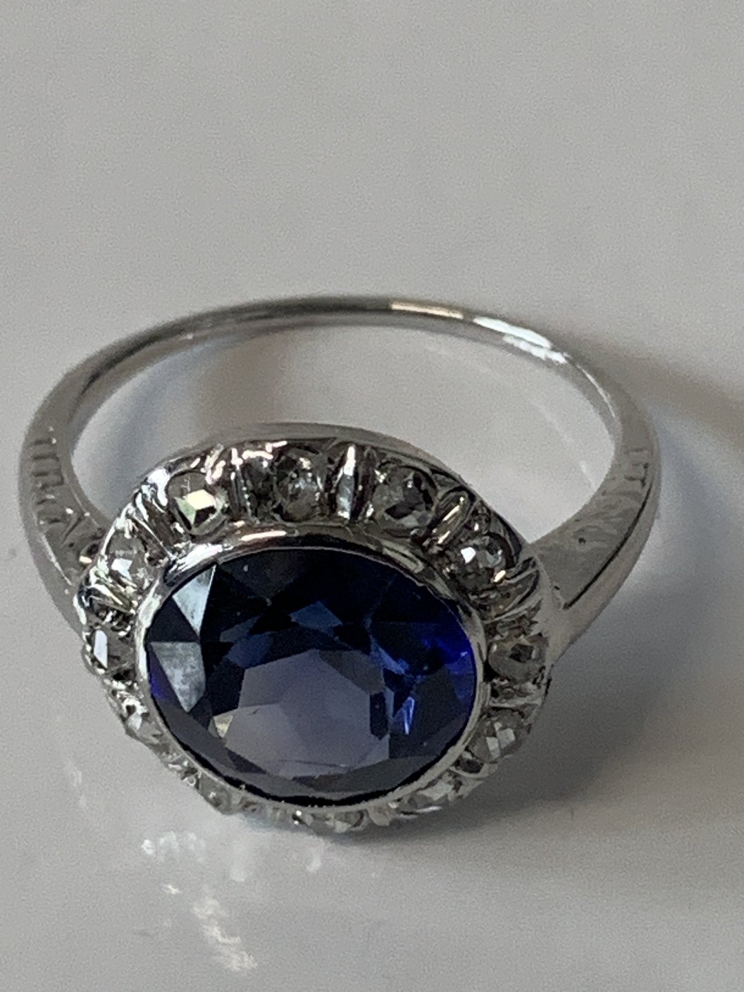 Rose ring in 14 carat white gold with diamonds and 1 blue sapphire