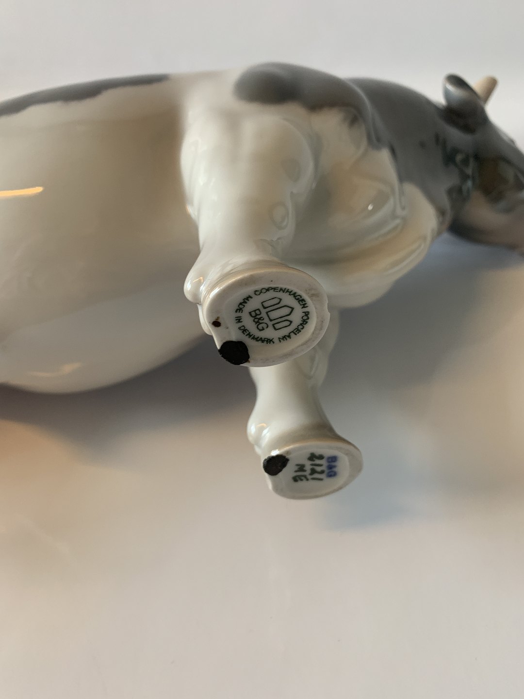 Bull From Bing and Grondahl Deck No. #2121 Height 18.5 cm approx Length 35 cm approx Has a chip at the hoof, see picture otherwise good condition