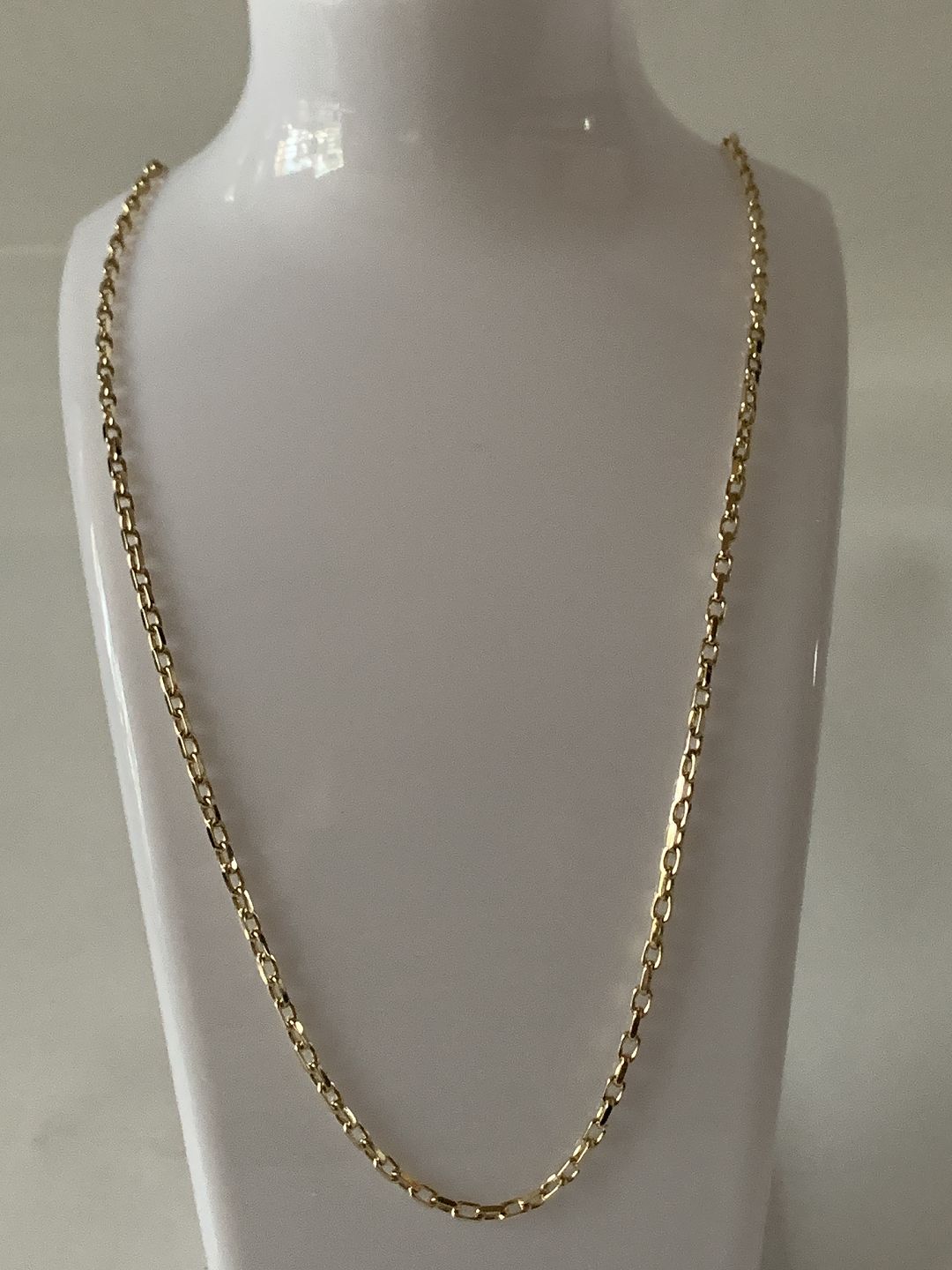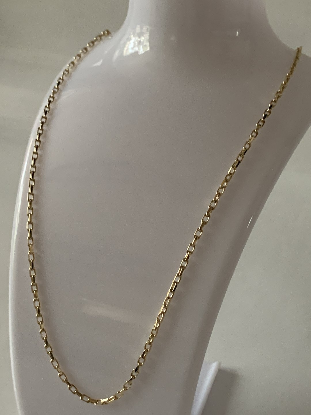 Flot guldkæde i Anker facet, smedet i 8 karat guld. Kæden er elegant og simpelt udformet. De små led gør at kæden falder blødt om halsen, og er behagelig at bære, vil den passe til mange forskellige vedhæng. Vi har hos Antikhuset et bredt udvalg af vedhæng til guldkæder. Dette udvalg kan du se her: https://www.antikhuset.net/katindex.asp?kukat=12179
