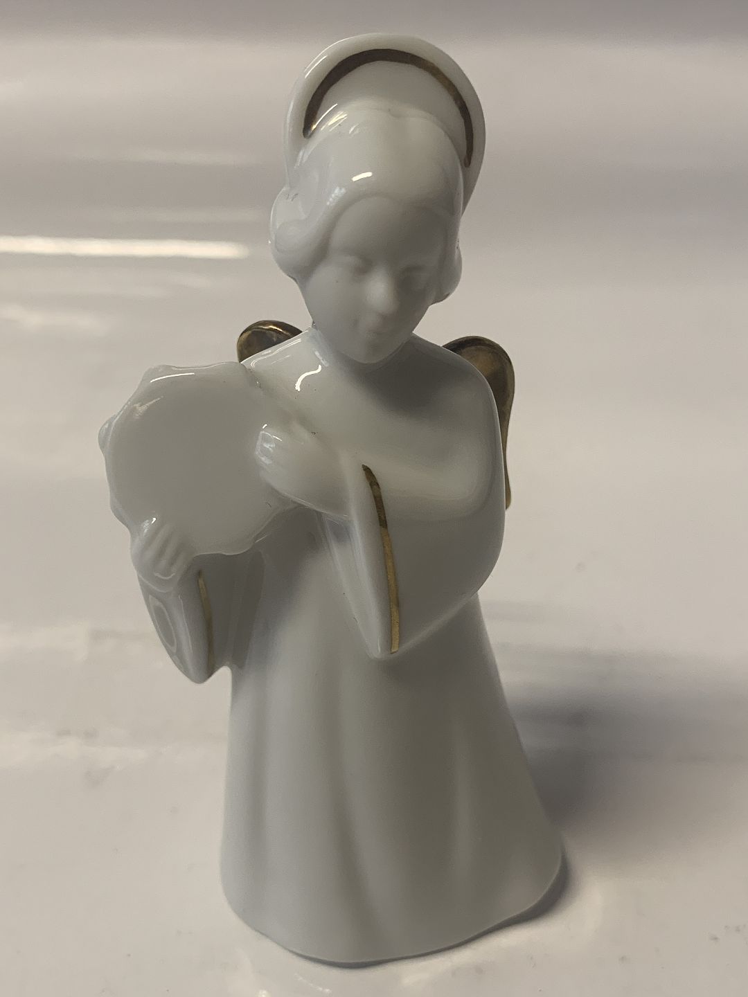 Bing & Grondahl. Heavenly Music. Tambourine No. 10 of 12. White porcelain angel with gold decoration and gold wings (24 carat). The series is called "Angel with Instruments" and consists of 12 pieces.