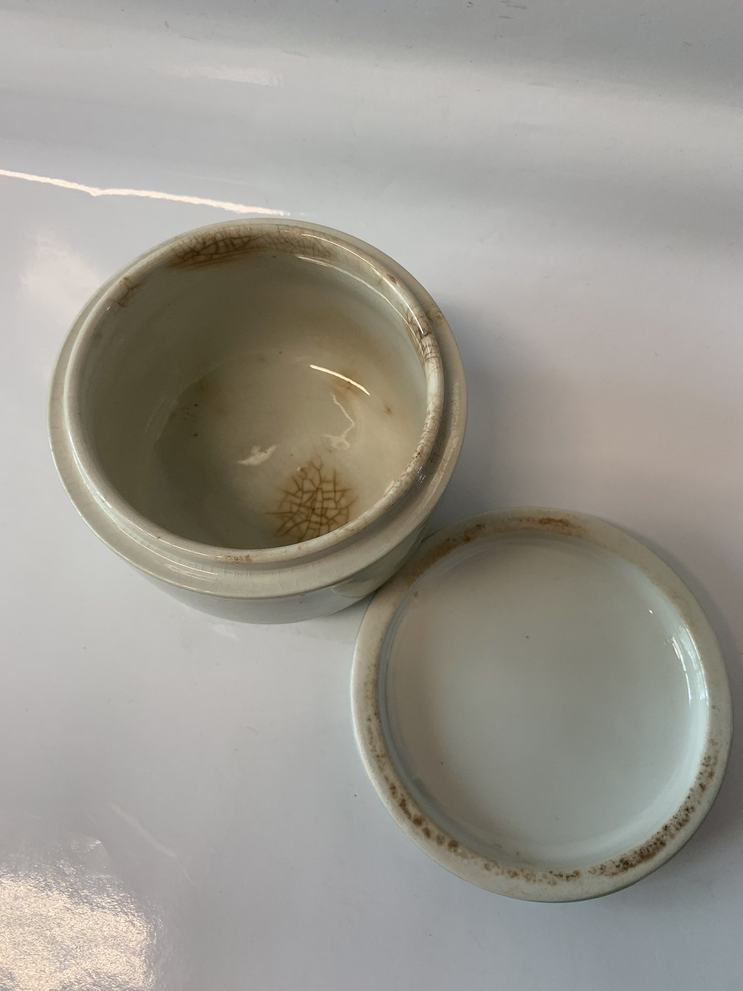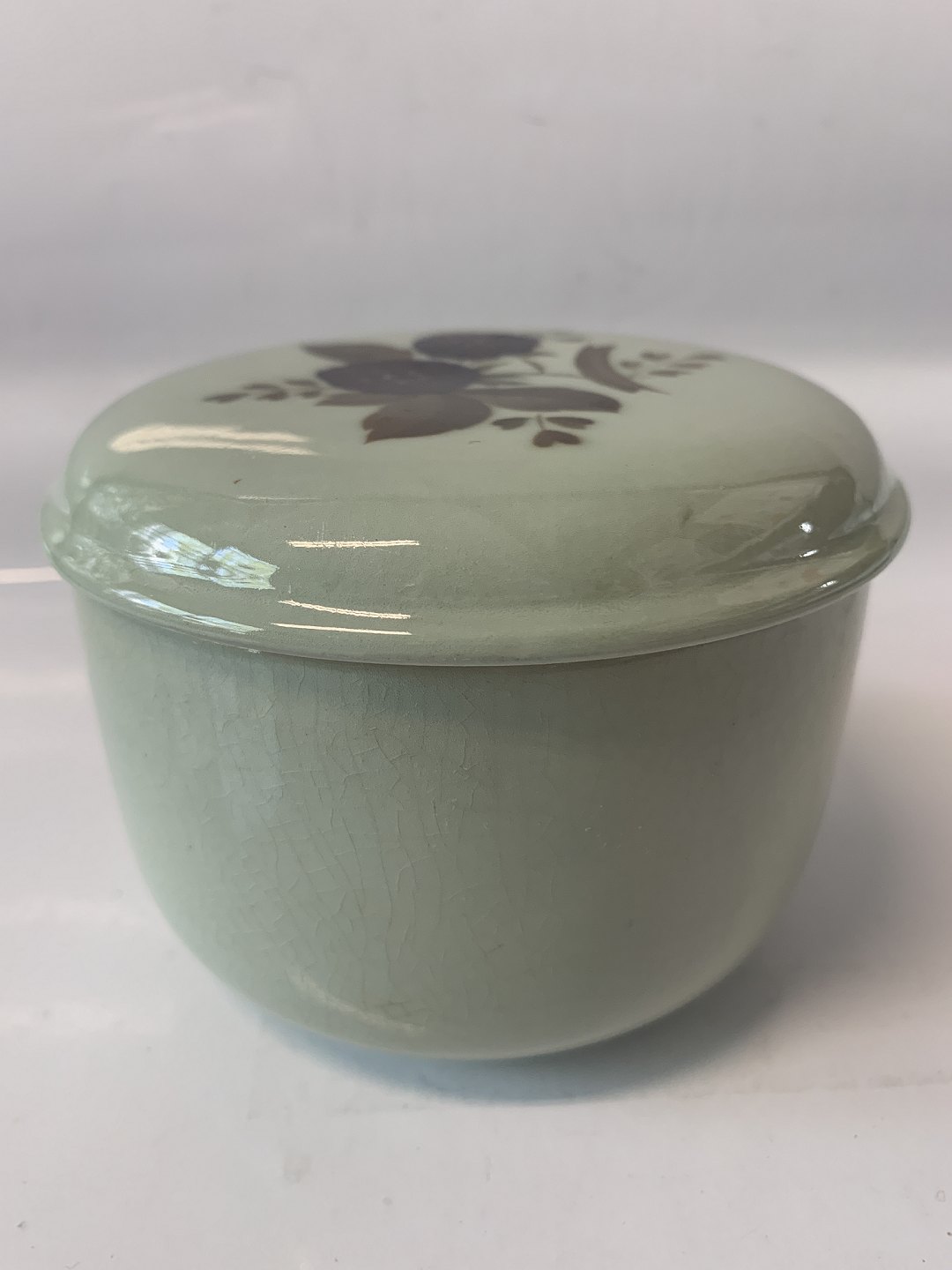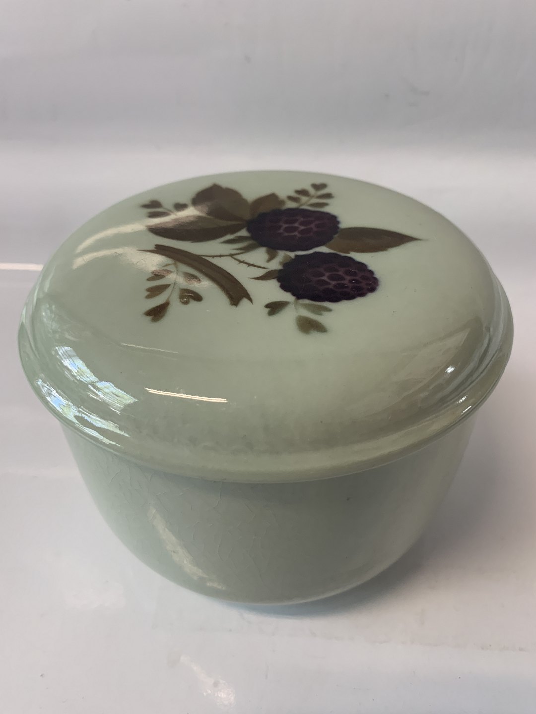 Aluminia Tidemands Jam Jar from Christmas 1938. Diameter 12.5 cm. Height 8.5 cm. There is discolouration inside. Please see photos.