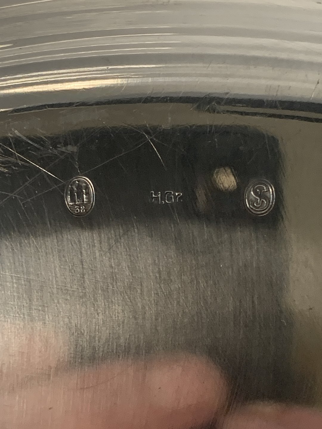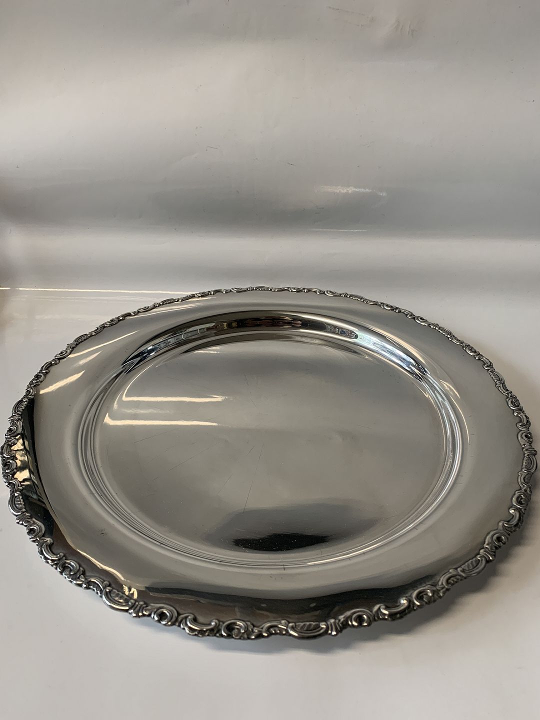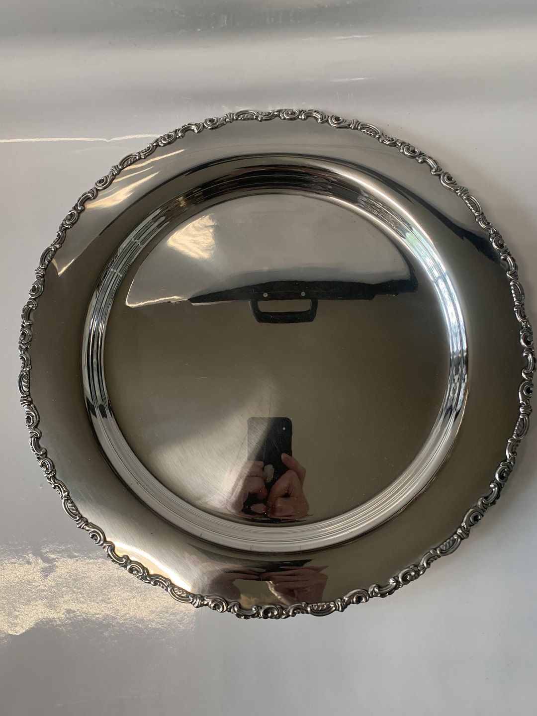 Serveringsfad / Bakke I Sølv Stemplet 3 Tårne H. Gr År 1938 Diameter 33 cm. polleret og velholdt stand