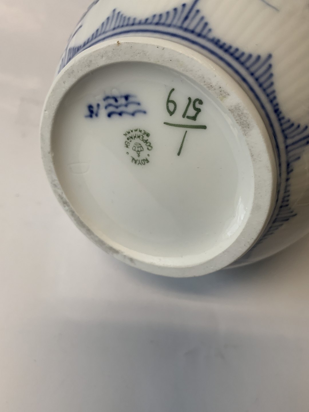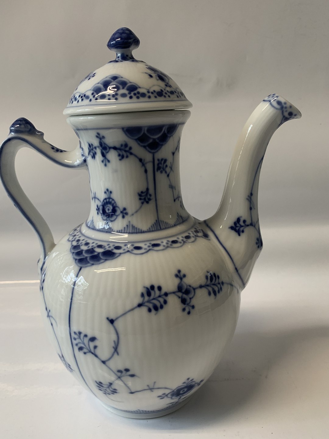 Royal Copenhagen Halvblonde Kaffekande. Produceret år 1923-1934. Dekorationsnummer 1/519. 1. sortering. Højde 24,5 cm. Perfekt stand uden fejl.