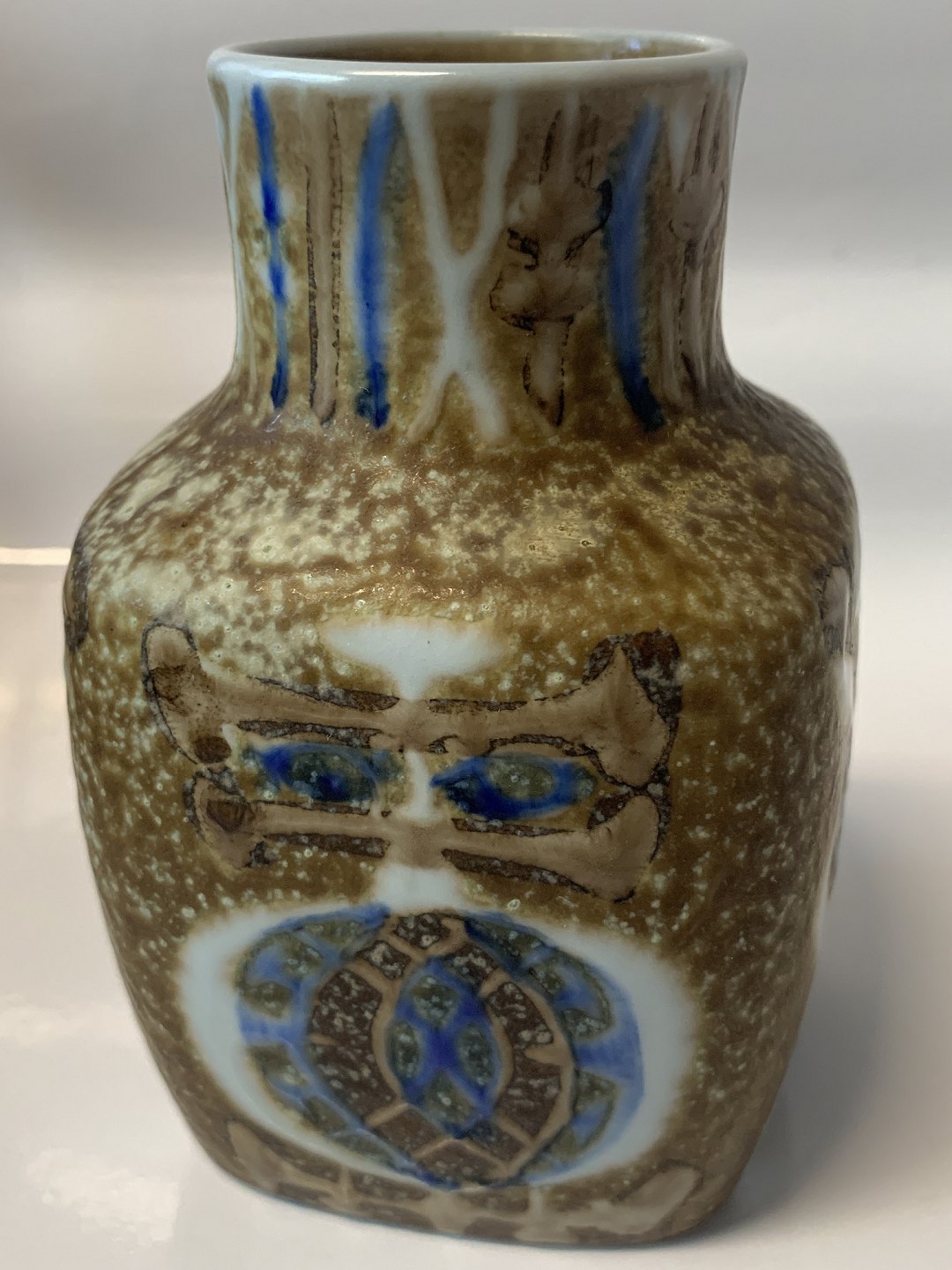 Royal Copenhagen Baca, owl vase. Designed by Nils Thorsson. Decoration number 720/3361. 1st grade. Height 11 cm. Perfect condition without any flaws.