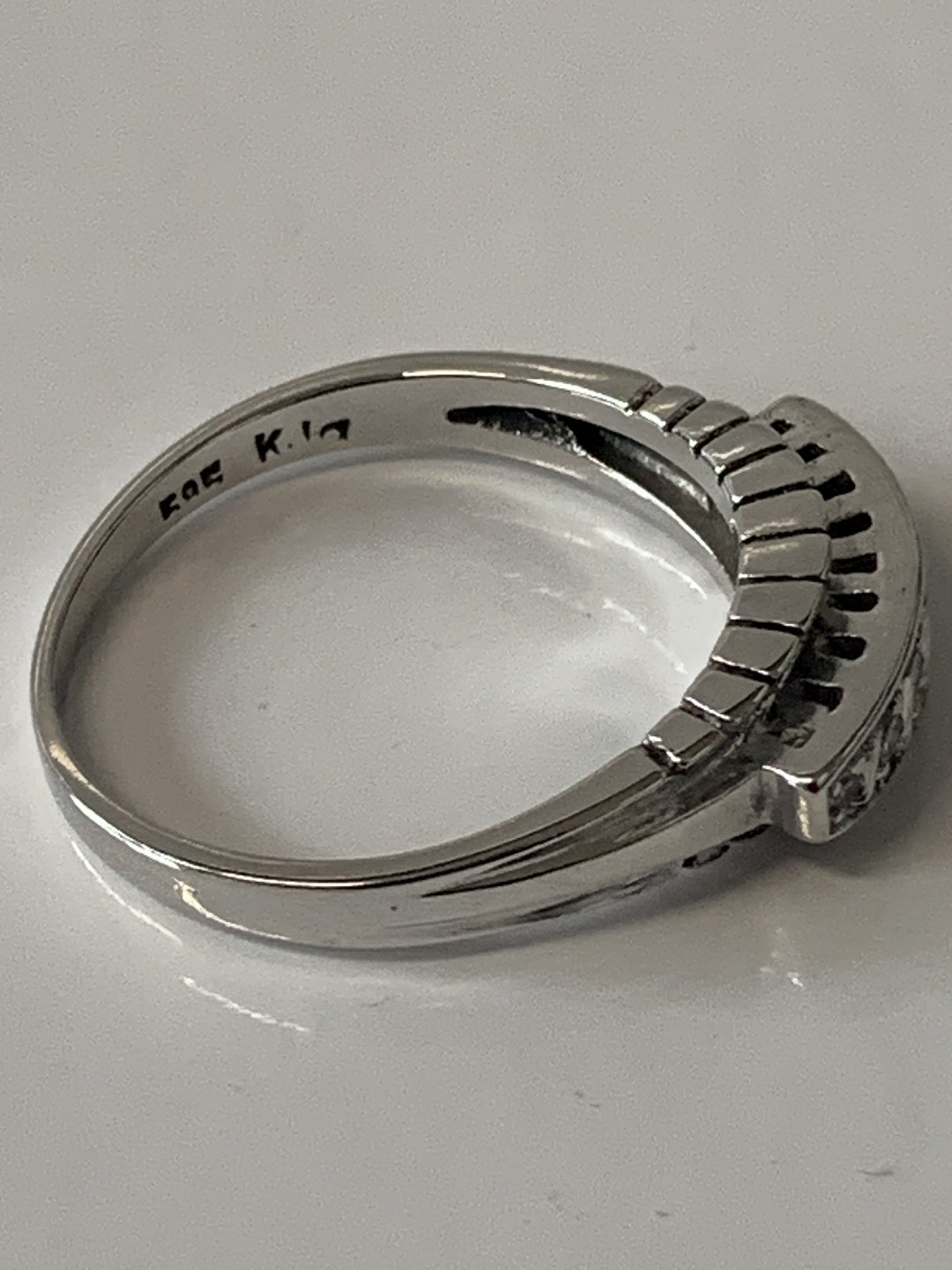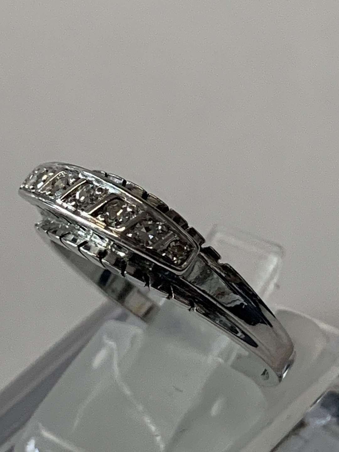 Diamond ring in 14 carat white gold with a shiny surface and 7 brilliant-cut diamonds