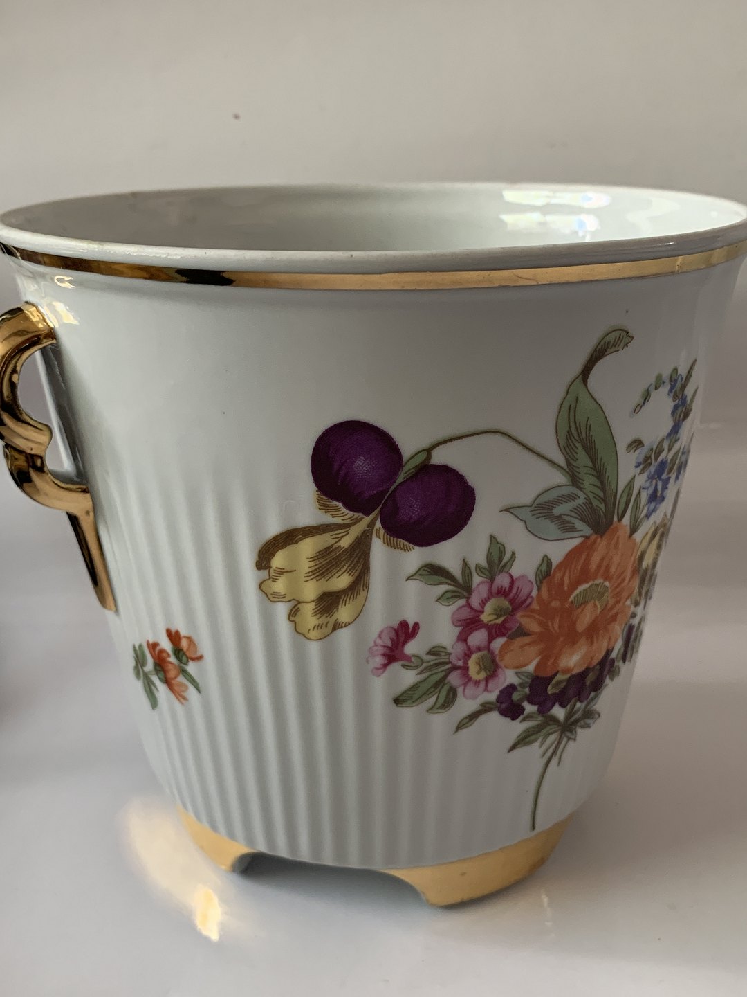 Urtepotteskjuler med blomstermotiv / 4 fødder.