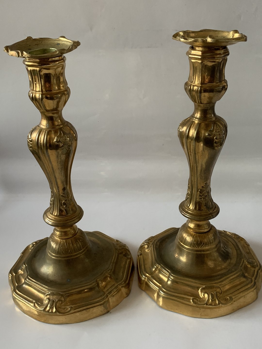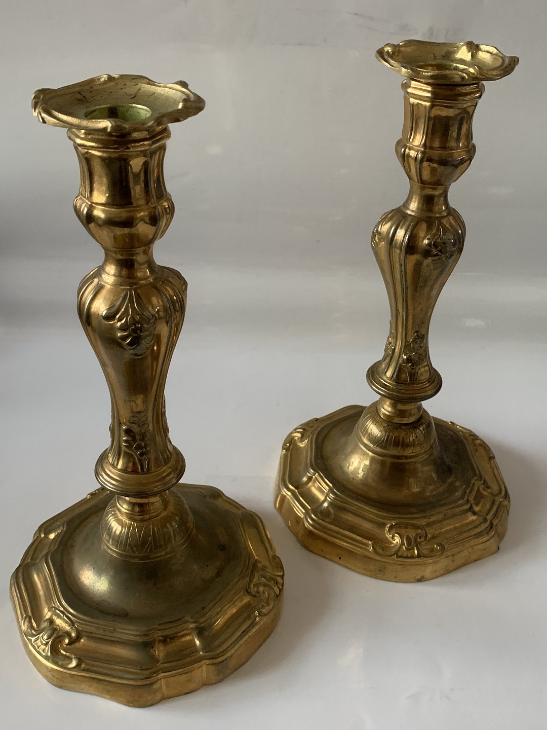 A pair of antique Bronze with angular feet. Height. 26 cm. With normal wear and tear. Neat and well maintained.