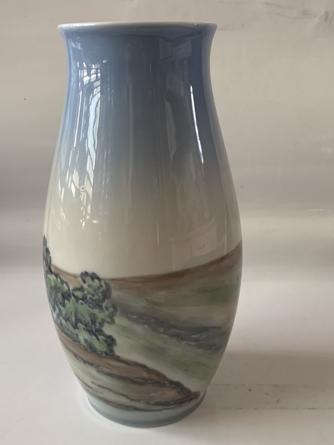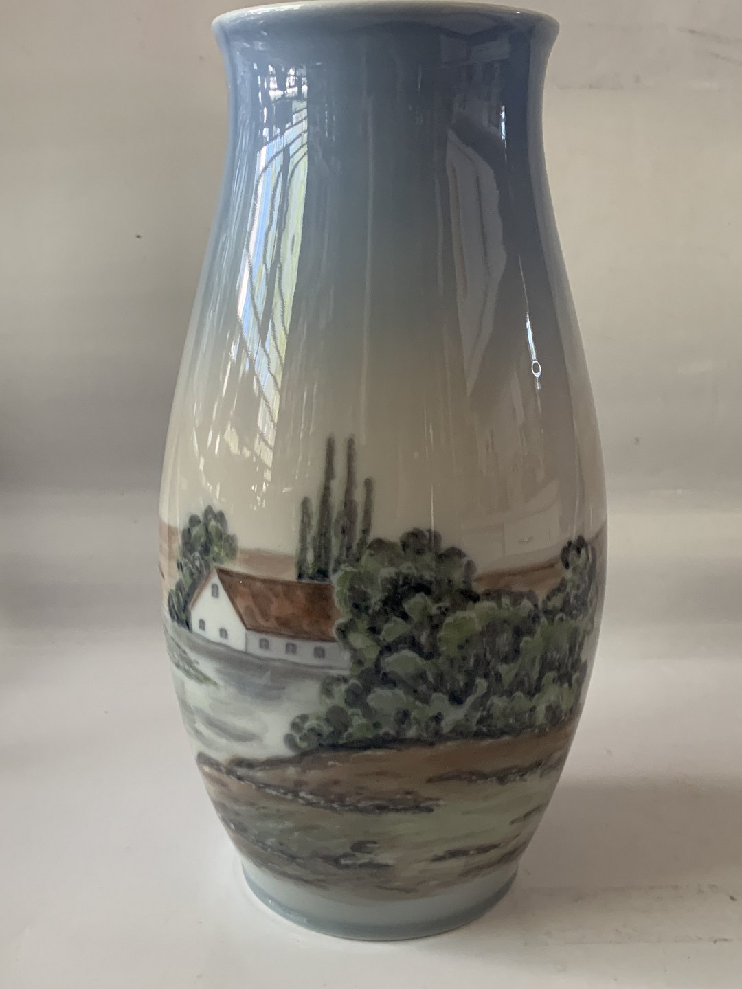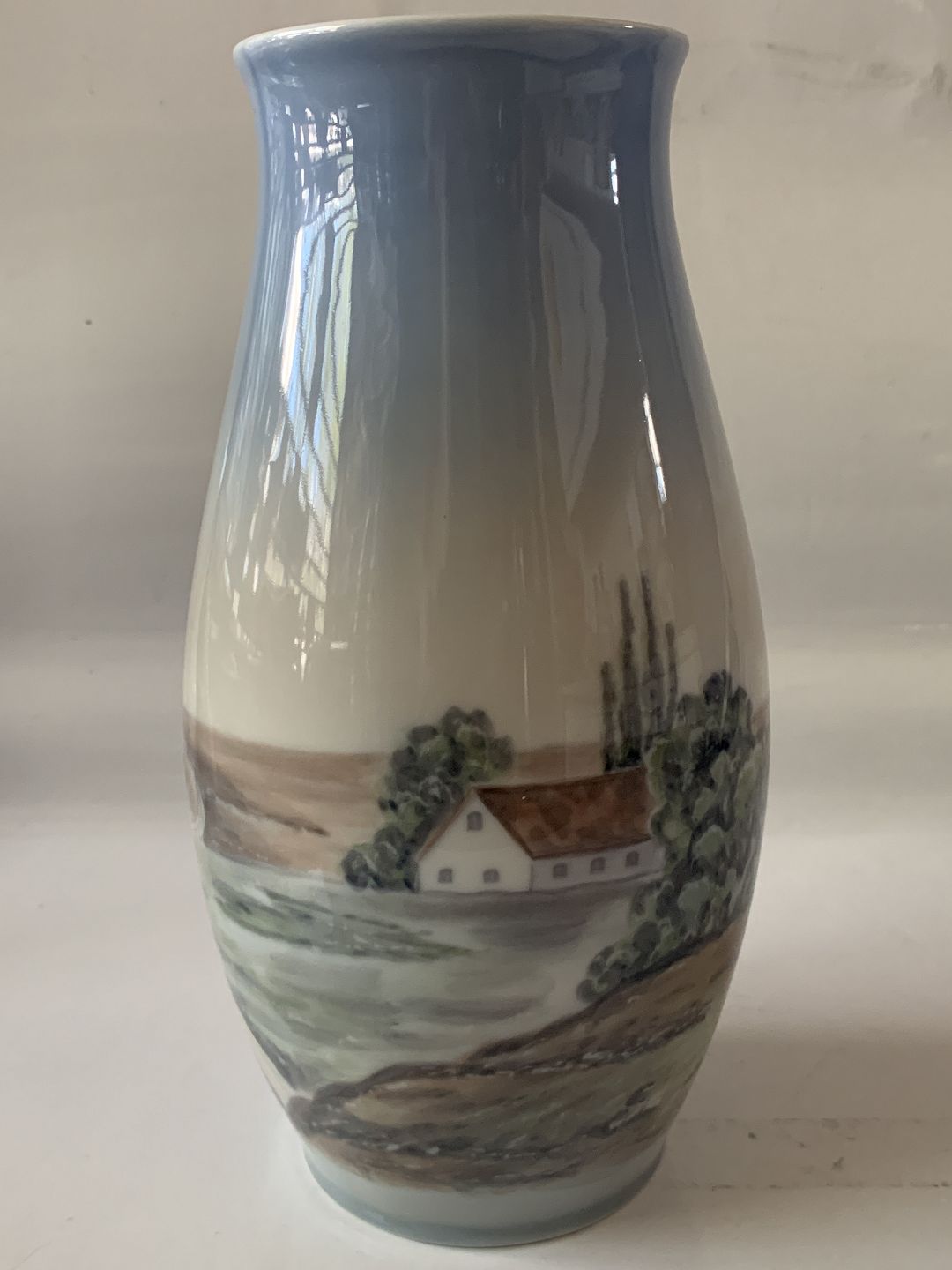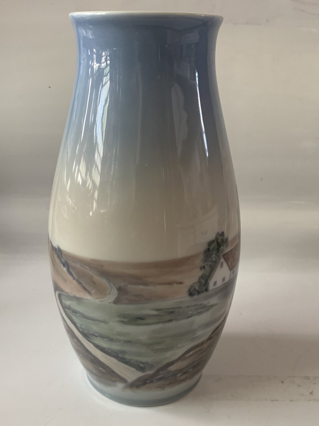 Bing & Grondahl Vase, Motif house and road in landscape.