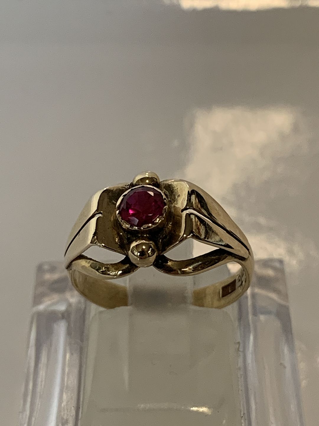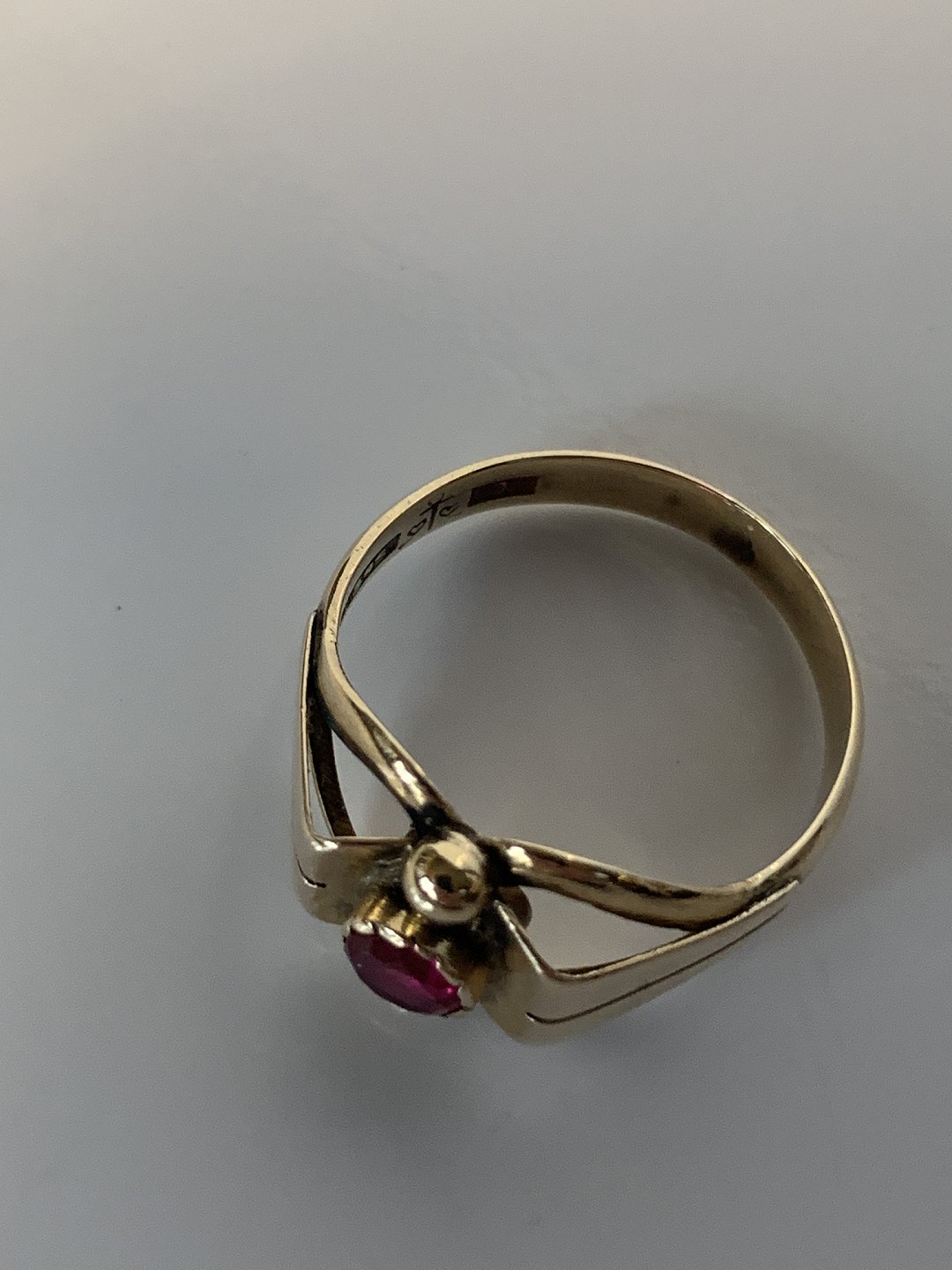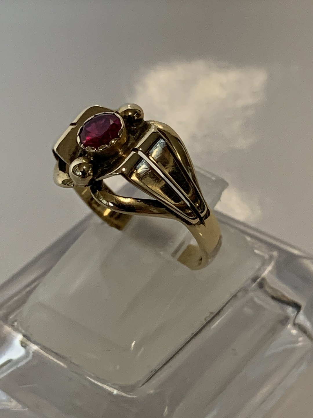 Damering med rød sten, i 14 Karat guld. Stemplet: 585. Ring størrelse 52, 16,55 mm. Flot og velholdt stand, efterset af guldsmed. Ringen findes ikke fysisk i vores butik, men kontakt os gerne hvis de ønsker at besigtige smykket