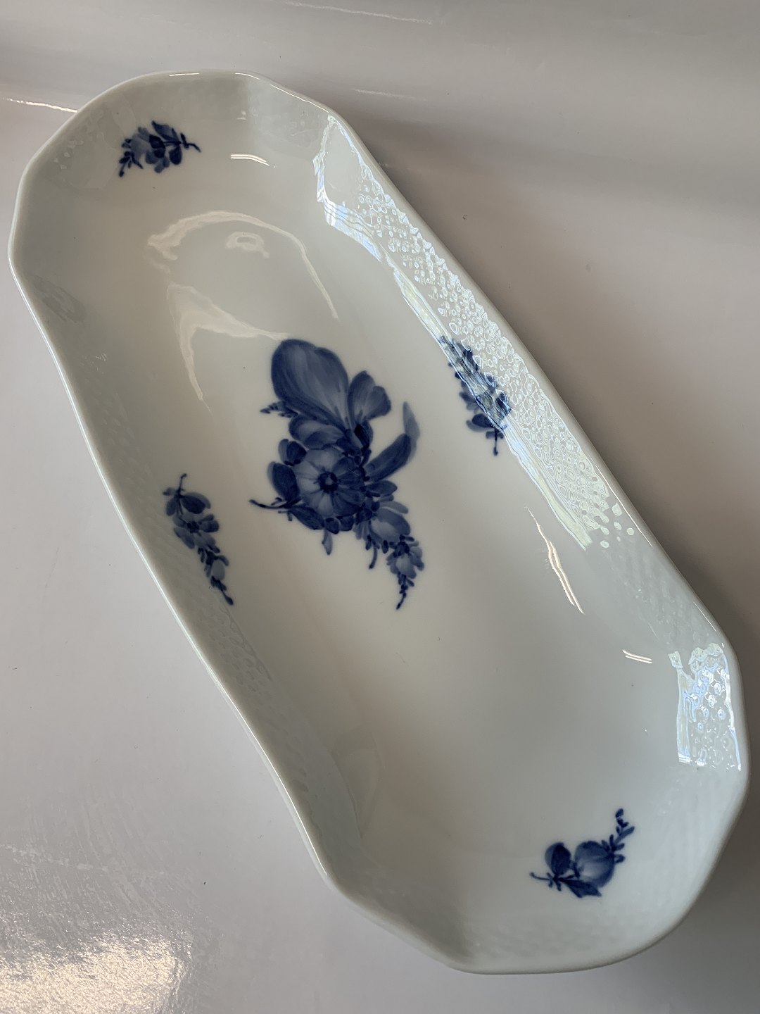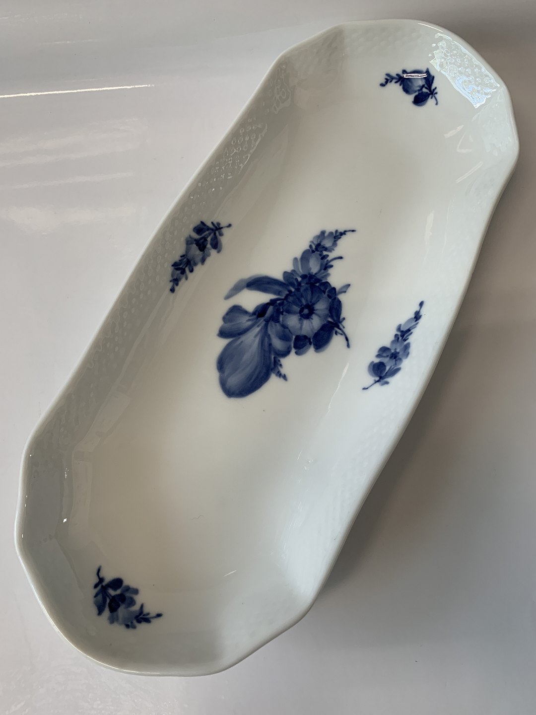 Royal Copenhagen Blå Blomst Flettet, Aflangt Sellerifad, Brødfad Dekorationsnummer 10/8072. Længde 36 cm. 2 sortering Flot og velholdt stand