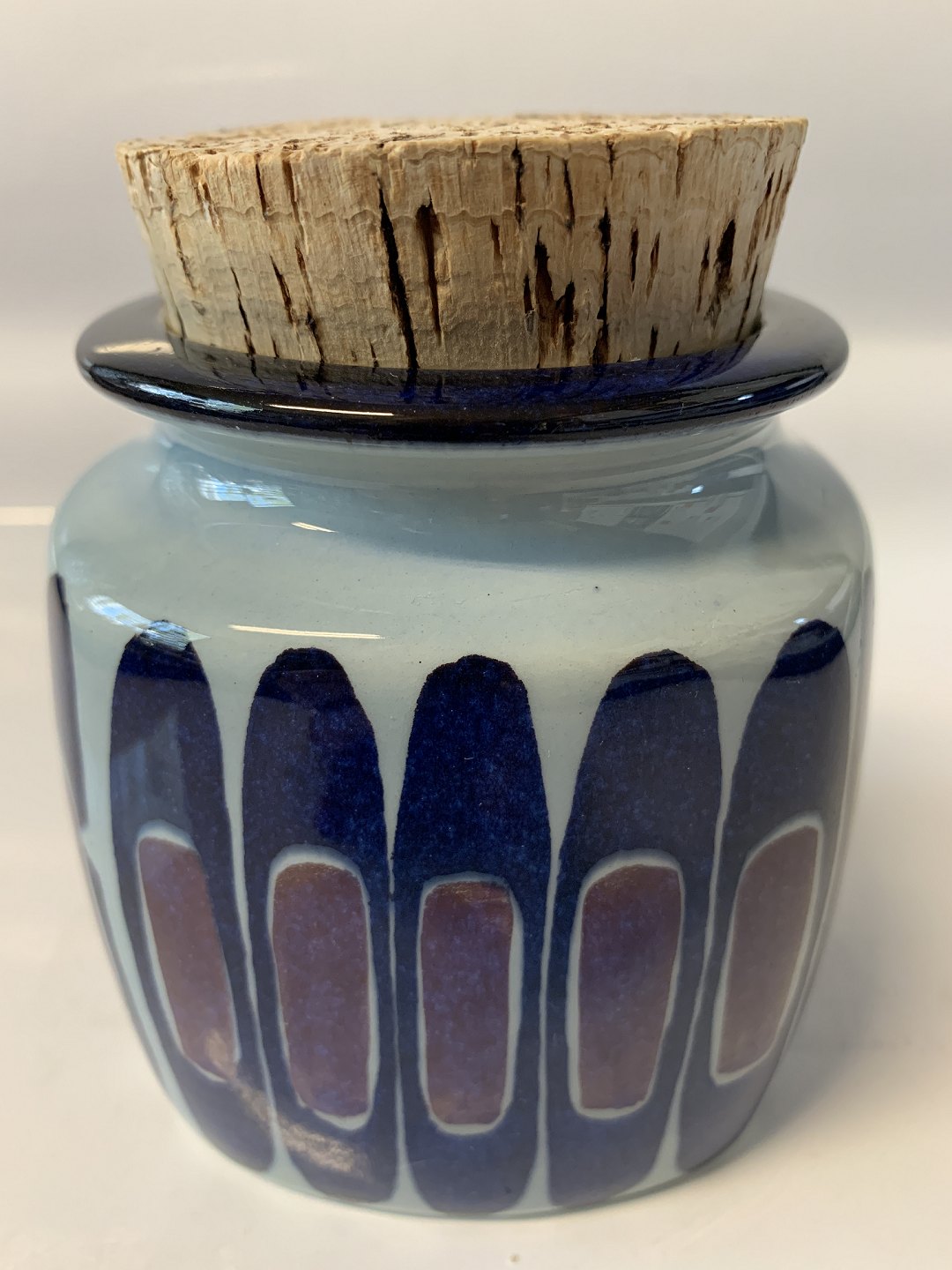 Royal Copenhagen Tenera Krukke med korkprop. Højde med prop 12 cm. Dekorationsnummer 194-2904. 1. sortering. Pæn og velholdt stand.