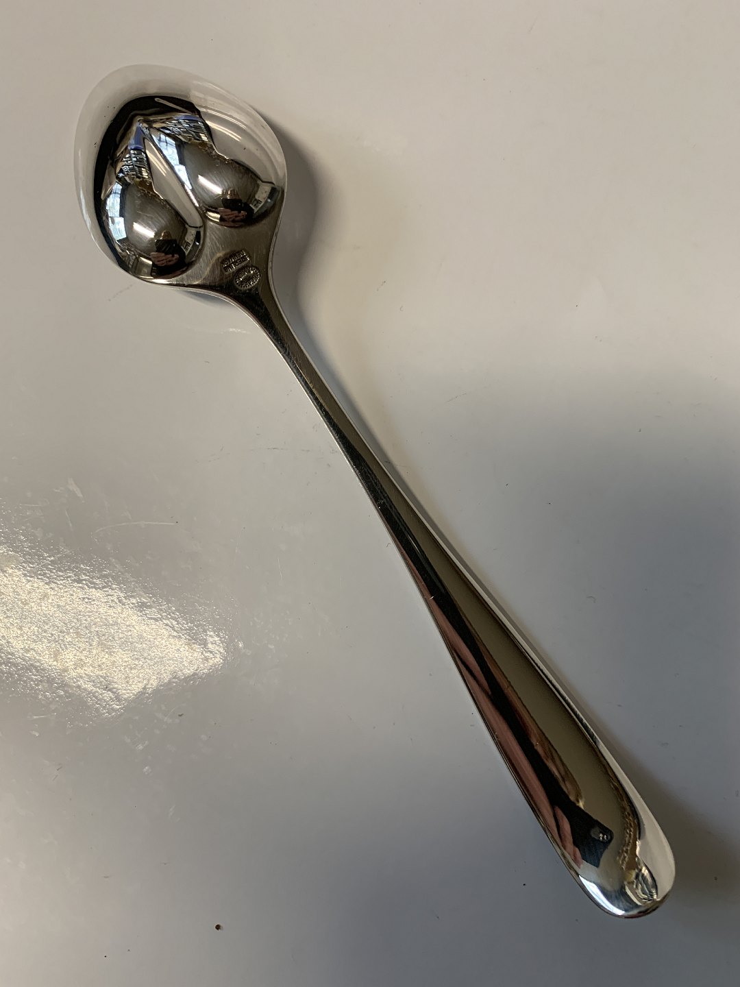 Really elegant and stylish children's spoon in solid sterling silver. Perfect for a nice christening gift.
