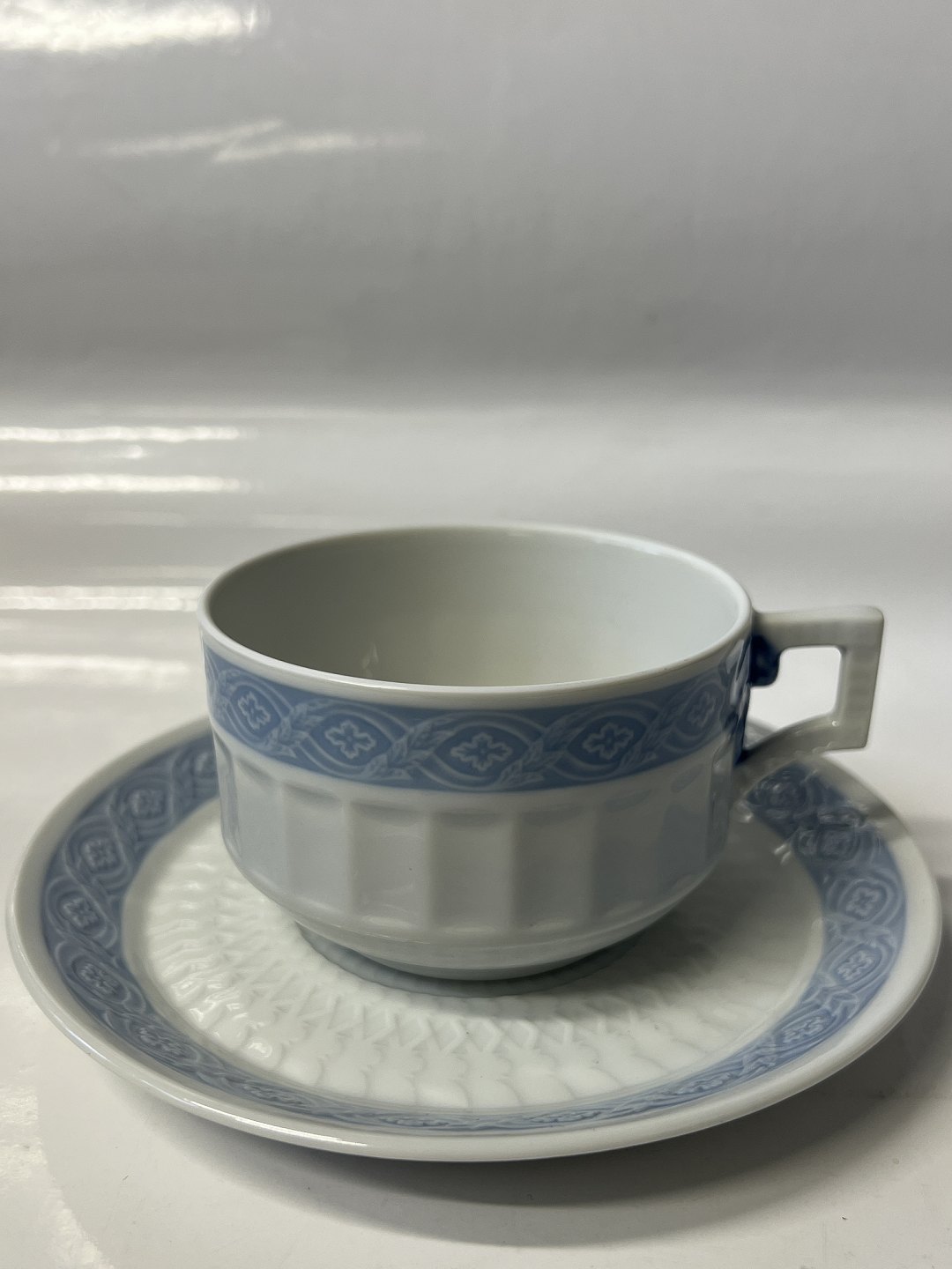 Royal Copenhagen Blå Vifte, ekstra stor morgenkop / chokoladekop med tilhørende underkop.
