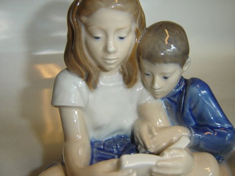 Royal Copenhagen Figurine, Children reading Decoration number 4670 Factory second Height 14 cm. Perfect condition