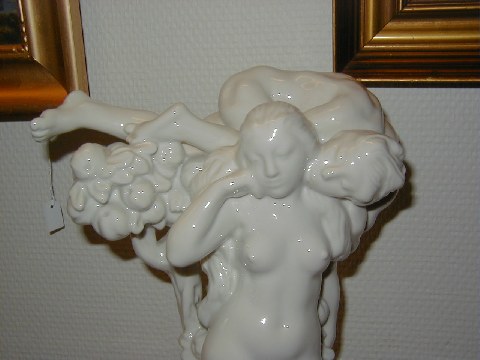 Enormous Bing & Grøndahl Figurine signed by Kai Nielsen 1913. It has decoration number 4028. It is very large; measures 34 cm. in height, 22 cm. in length and 21 cm. in depth. It has a factory made firing crack at the bottom.